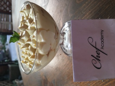 Portare latte e panna ad ebollizione con foglie di menta, poi togliere dal fuoco, lasciar raffreddare un po’ e usare un colino per togliere le foglie. Nel frattempo fare un pastello con tuorli, zucchero ed amidi. Unire poi latte e panna con il pastello e portare sul fuoco a 64 gradi continuando a mescolare con una frusta. Tolto poi dal fuoco, aggiungere il cioccolato bianco e mescolare il tutto. Mettere la crema a freddare. Successivamente si può scegliere di utilizzare della panna montata per alleggerire la crema e per renderla più cremosa. Una volta ottenuta la consistenza che si desidera si può procedere con la preparazione del tiramisù. Bagnare i Pavesini con caffè espresso e latte ed utilizzarli come base, poi fare uno strato di crema (ripetere la cosa per altri due strati.