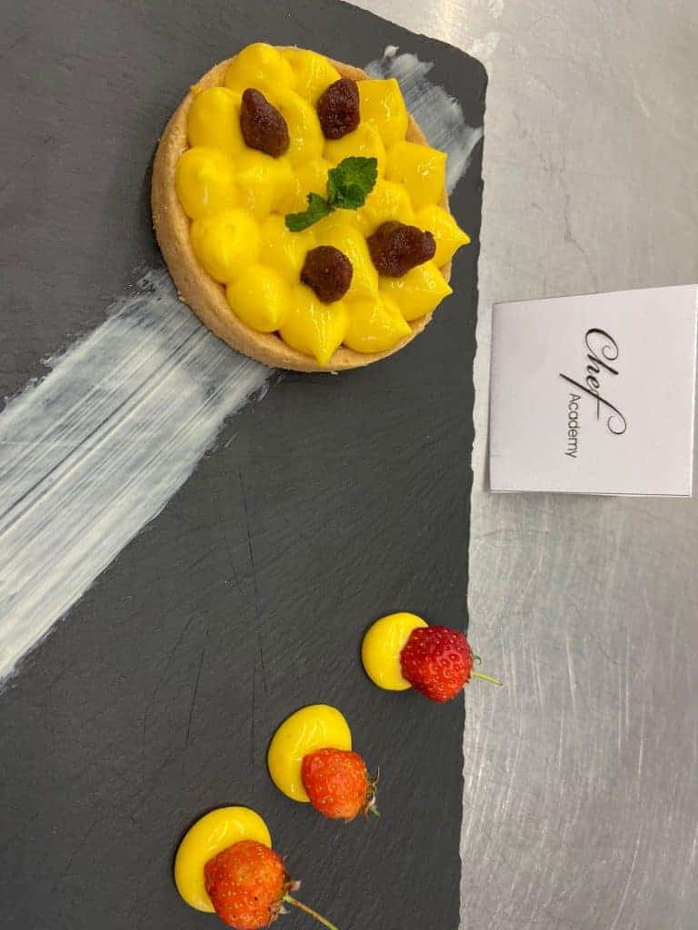 Per la crema: unire il latte,la panna, la bacca di vaniglia e la buccia di limone e metà dello zucchero;nel frattempo fare una pastella con i tuorli lo zucchero e l’amido, girare fino a ottenere un composto liscio. Quando il latte arriva a bollore stemperare il composto,unire sul fuoco fino a leggere bollore;versare su una teglia,coprire con pellicola. Far raffreddare.