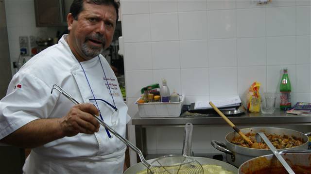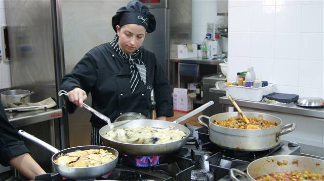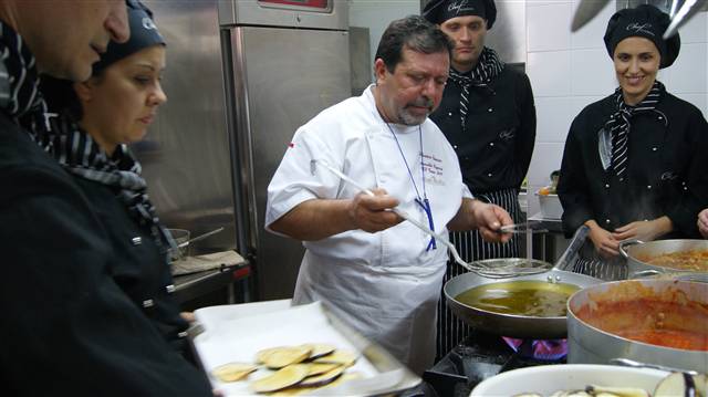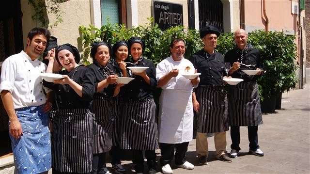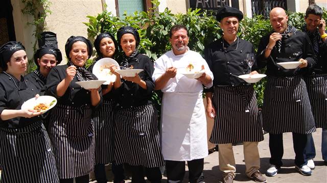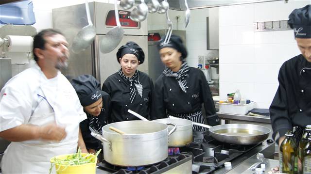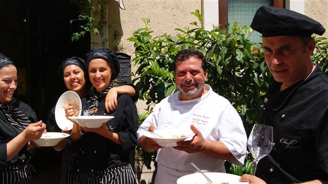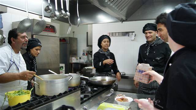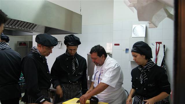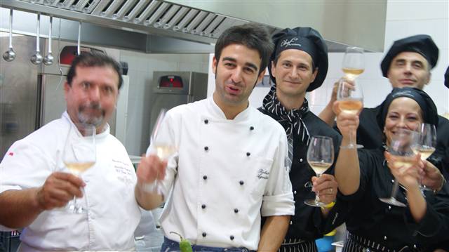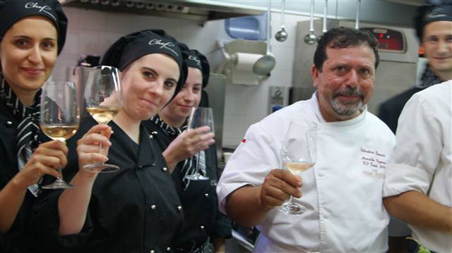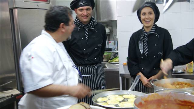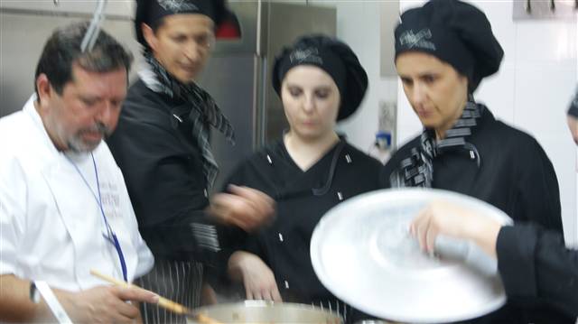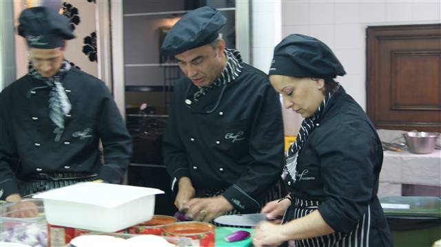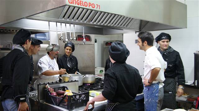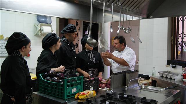 Lezione finale con i corsisti del corso base di cucina 1° edizione alla presenza degli chef Salvatore Denaro e Roberto Agostini.