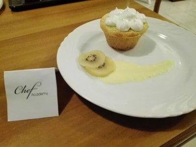 Per prima cosa preparare il bisquit montando albumi e zucchero e unendo poi tuorli a filo e cacao. Versare su una teglia e cuocere in forno ventilato a 200°C per 5-10 minuti. Nel frattempo preparare la crema pasticcera scaldando in un pentolino latte e buccia di limone; fare un pastello con uova, zucchero e amido di mais, versarvi un cucchiaio di latte caldo e amalgamare, per poi versare il pastello nel latte e portare ad ebollizione mentre si mescola continuamente. Far freddare. Impastare la frolla, montando burro e zucchero, unire poi l’uovo e il succo e la polpa del kiwi a filo. Infine aggiungere farina e baking e impastare. Adagiare la frolla montata su dei pirottini spruzzati con staccante e dargli la forma. Metervi all’interno il bisquit coppato e la crema. Cuocere a 170°C ventilato per 20 minuti. Per la meringa all’italiana al kiwi: Mettere in un pentolino il succo di kiwi (filtrato con un colino), zucchero e un goccio d’acqua. Portare a temperatura di 121°C e spegnere il fuoco. Nel frattempo montare gli albumi a neve e versarvi lo sciroppo ottenuto mentre montano. Continuare a montare finchè non fredda. Una volta freddate le tortine, decorarle con la meringa con una sac à poche. Per la decorazione utilizzare delle fettine di kiwi e la crema inglese: scaldare in un pentolino latte e panna con la buccia di limone; mescolare a parte tuorli e zucchero e quando il primo composto bolle, versarvi il secondo e continuare a mescolare finchè non si addensa leggermente.
