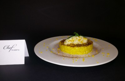 Procedimento: Dissalare e ammollare il baccalà un paio di giorni prima della preparazione del piatto, cambiare l’acqua di ammollo ripetutamente. Una volta ammollato e dissalato, togliere la pelle al baccalà e tagliarlo a pezzi. Mettere i tocchetti di baccalà in una pentola e farli cuocere nel latte in immersione per circa 20 minuti. Quindi scolare e tenere il latte restante da parte. Montare la crema di baccalà con l’aiuto di un frullatore elettrico e versare a filo l’olio, controllare la consistenza e se occorre aggiungere qualche cucchiaio del latte rimasto. Regolare di sale(poco) e pepe bianco macinato al momento, mettere in frigo . Riscaldare il brodo di verdure preparato precedentemente. Stemperare in una ciotola un po’ di brodo caldo e i pistilli di zafferano. Successivamente prendere una padella ampia , versare un filo d’olio extravergine d’oliva e far tostare il riso per qualche minuto. Bagnare quindi con il brodo allo zafferano e sfumare. Continuare la cottura del risotto versando un mestolo di brodo vegetale alla volta, man mano che quello precedente verrà assorbito dal riso. Dopo circa 18/20 minuti il risotto sarà pronto. Togliere la padella dal fuoco e mantecare aggiungendo il burro e il parmigiano. Per impiattare: mettere il risotto nel piatto e spolverizzare con la polvere di liquirizia, aggiungere la scorza grattugiata dell’arancia e infine adagiare sopra il risotto la quenelle di baccalà mantecato. Decorare con l’arancia grattugiata e le foglioline di menta (oppure pistilli di zafferano) e servire.