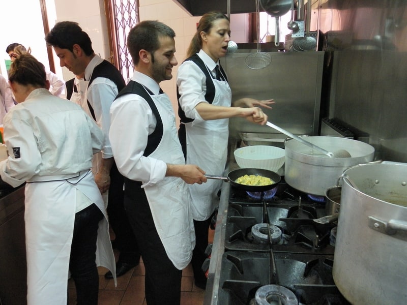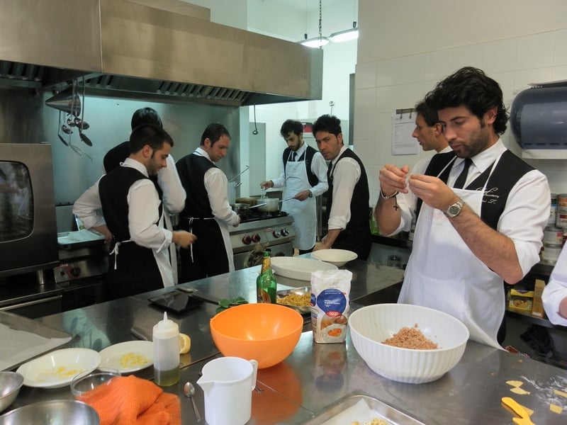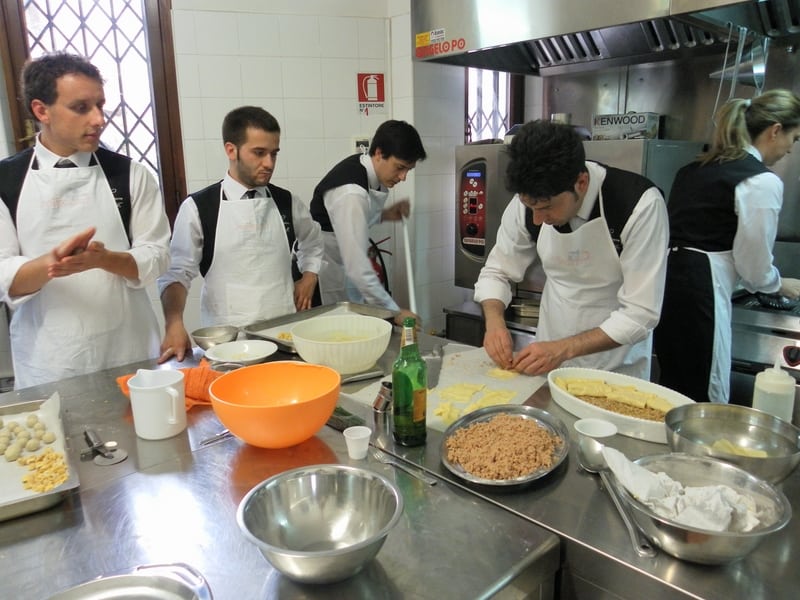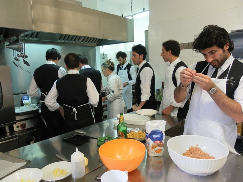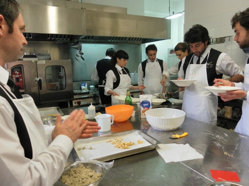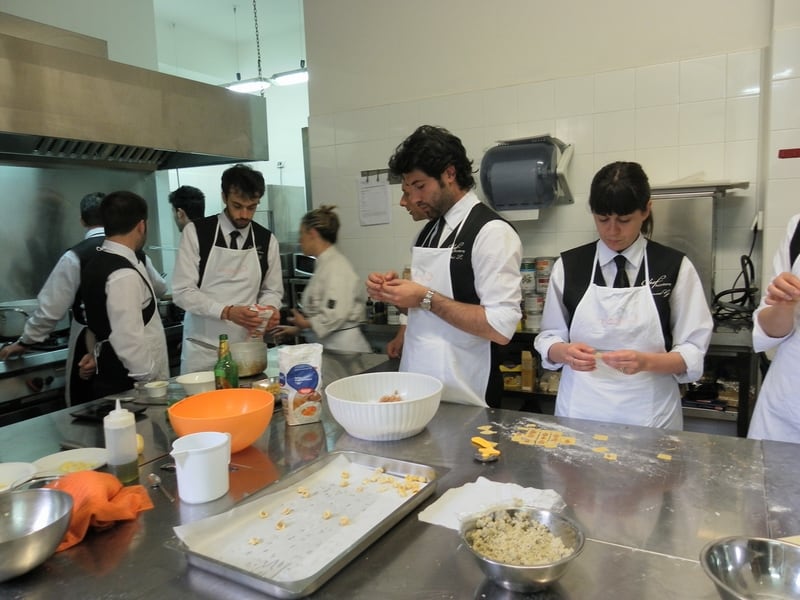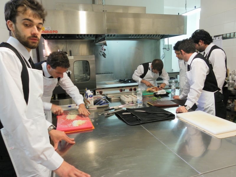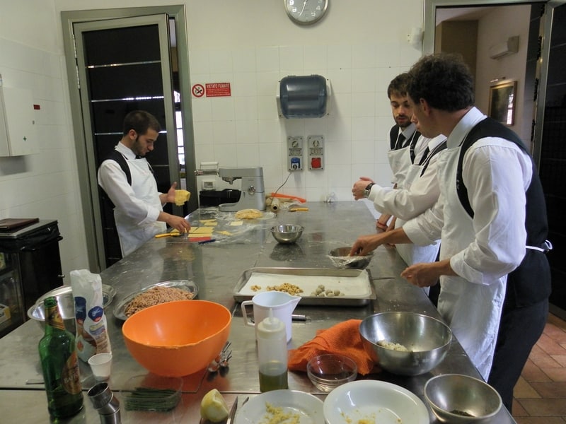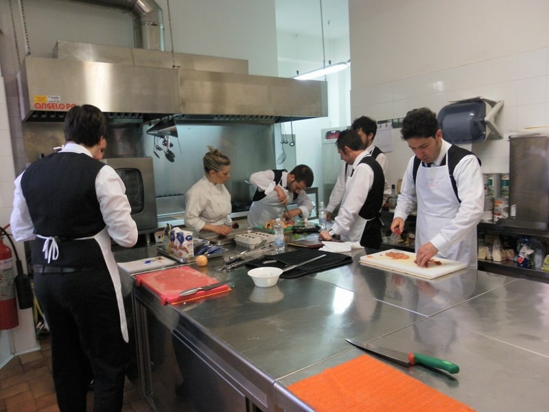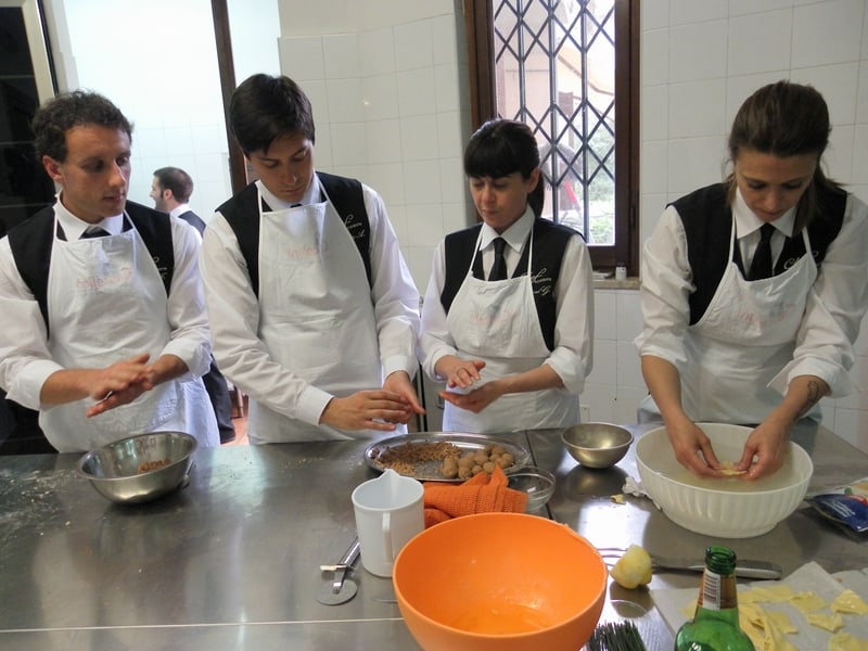 Gli allievi del corso ‘Addetto qualificato di sala ristorante’ (MAÎTRE) alla loro seconda ed ultima lezione in cucina con la Chef stellata Iside de Cesaredel ristorante ‘La Parolina’ .