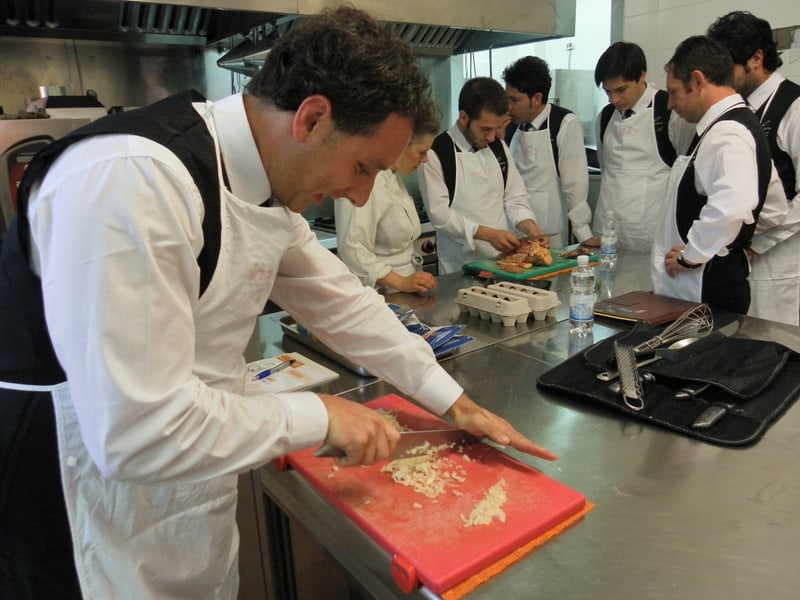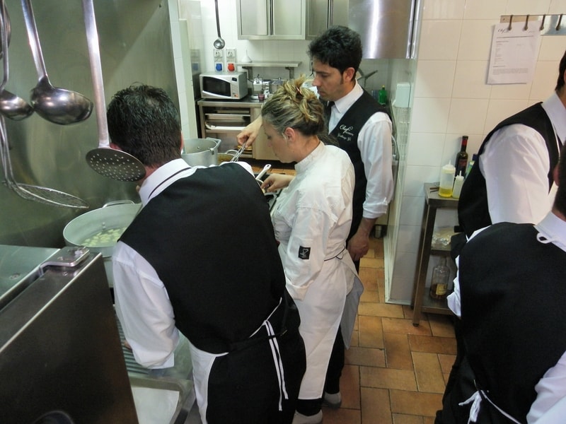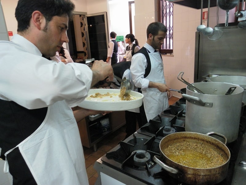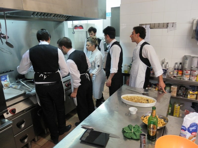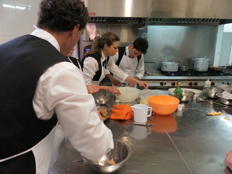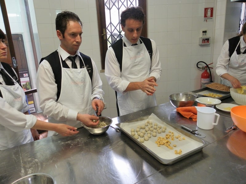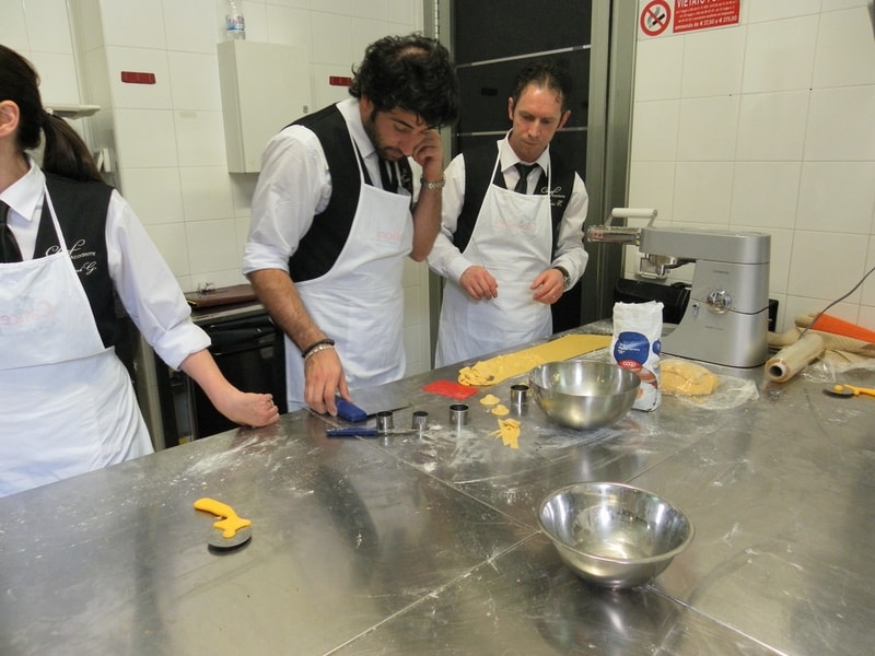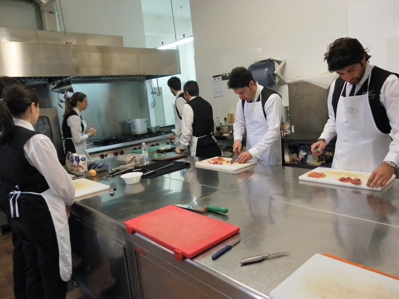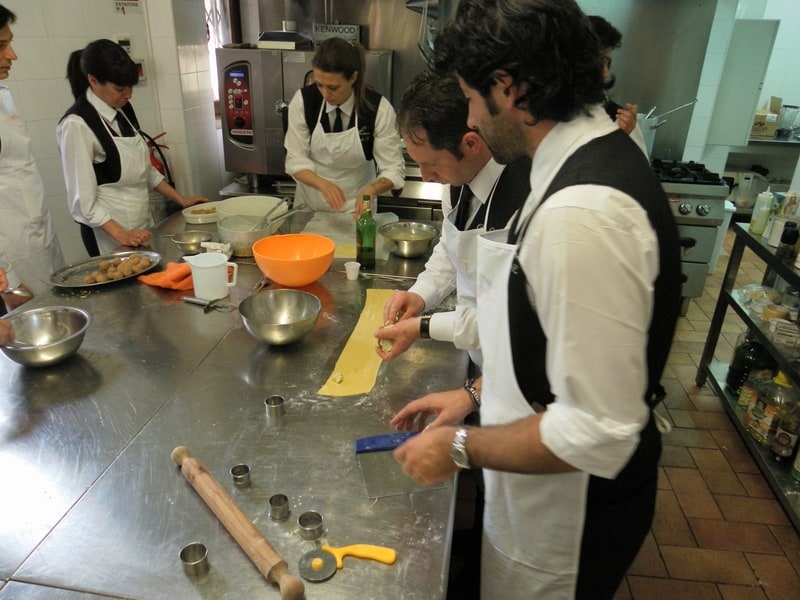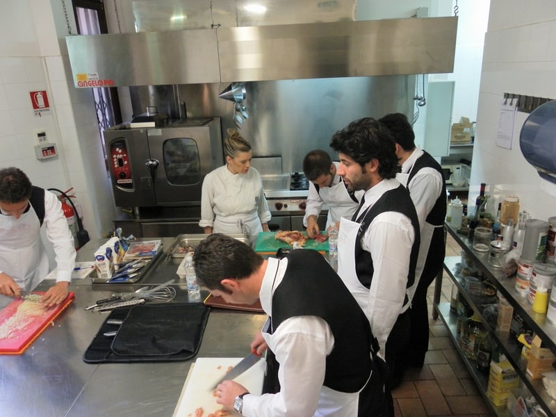 Gli allievi del corso ‘Addetto qualificato di sala ristorante’ (MAÎTRE) alla loro seconda ed ultima lezione in cucina con la Chef stellata Iside de Cesaredel ristorante ‘La Parolina’ .