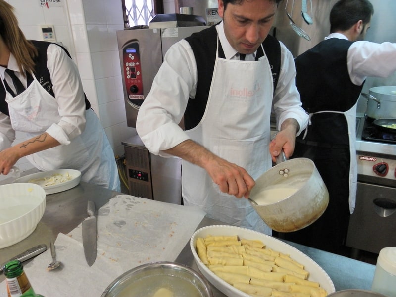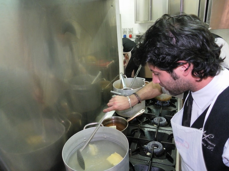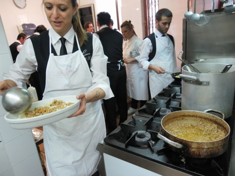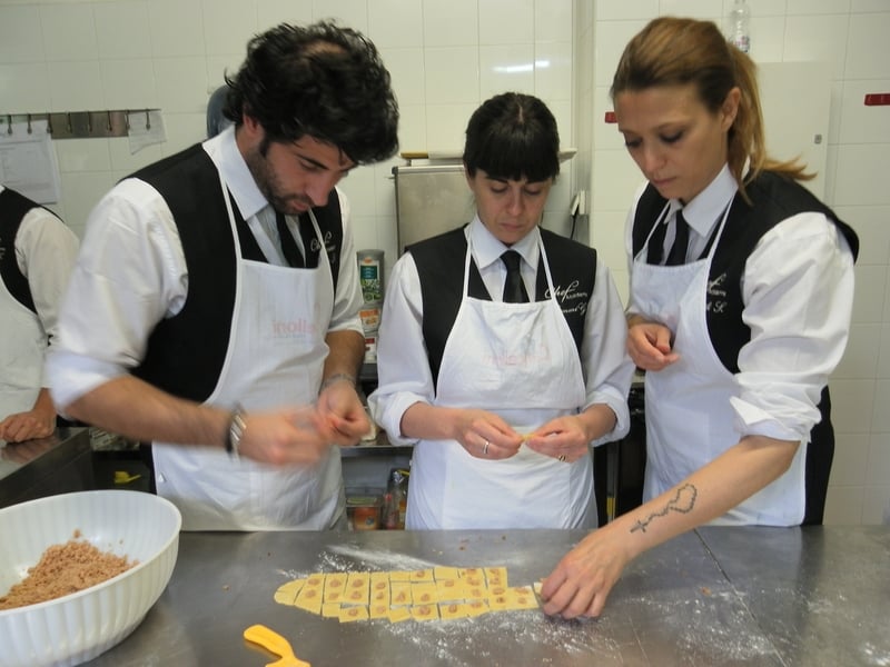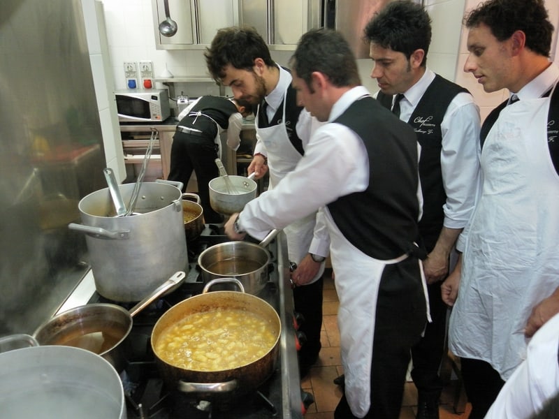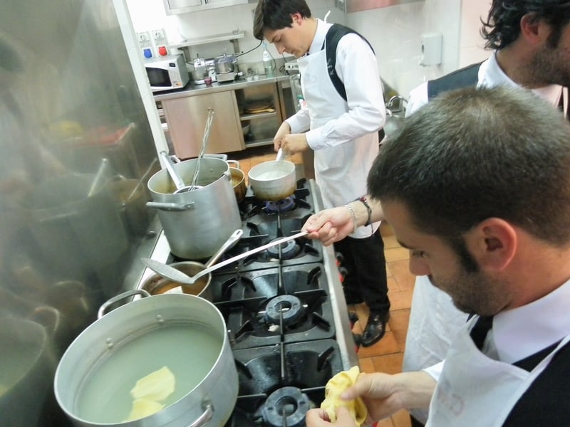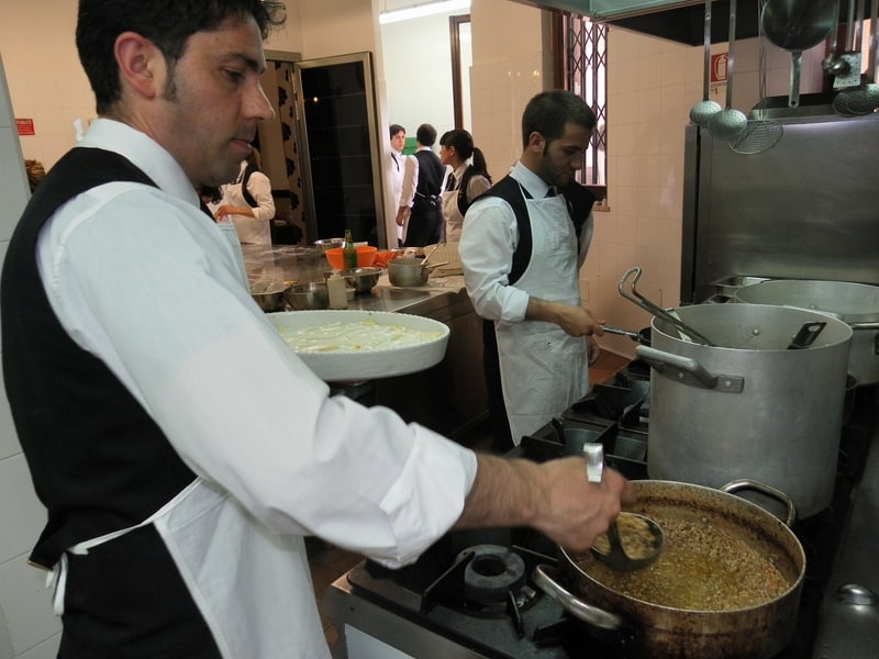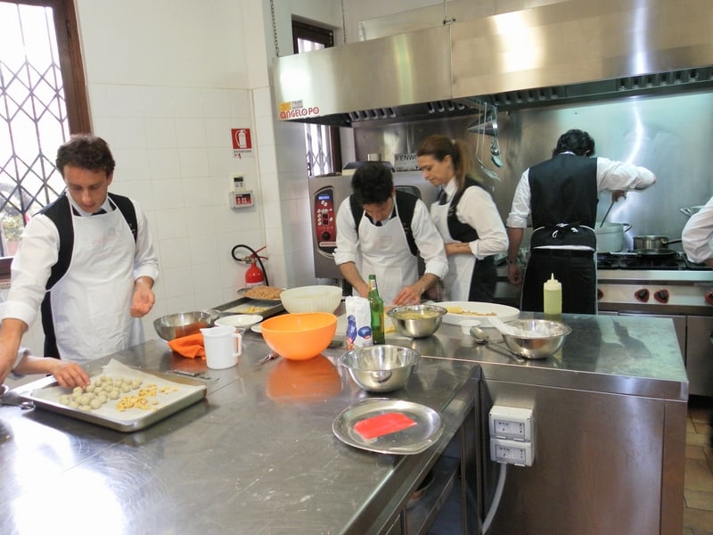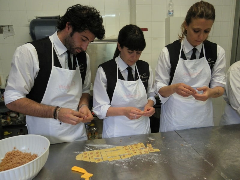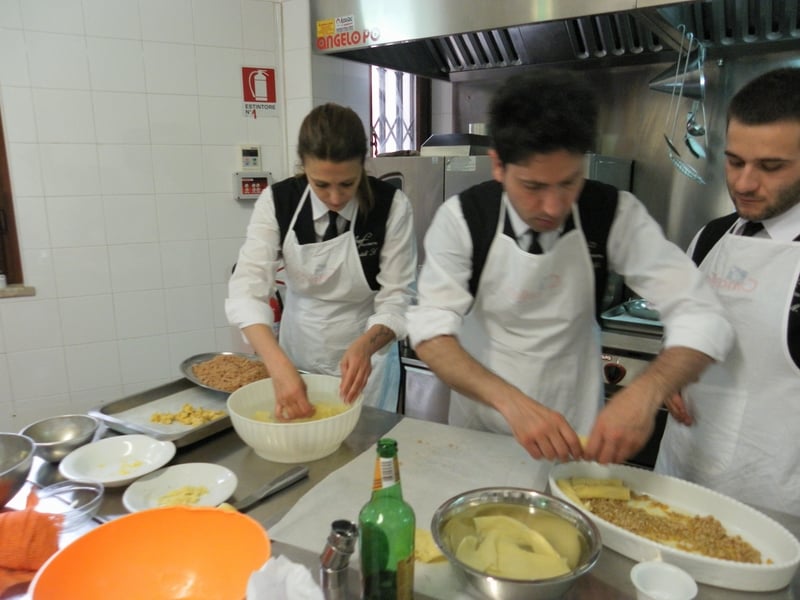 Gli allievi del corso ‘Addetto qualificato di sala ristorante’ (MAÎTRE) alla loro seconda ed ultima lezione in cucina con la Chef stellata Iside de Cesaredel ristorante ‘La Parolina’ .