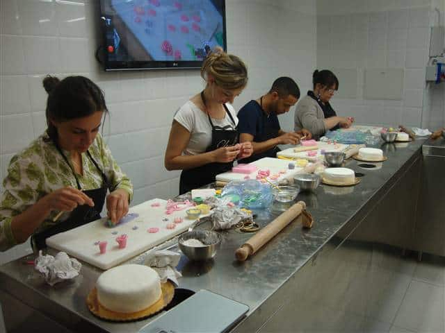 I partecipanti impegnati nella realizzazione della decorazione delle torte sotto la supervisione della nostra Cake Designer e dei suoi assistenti.