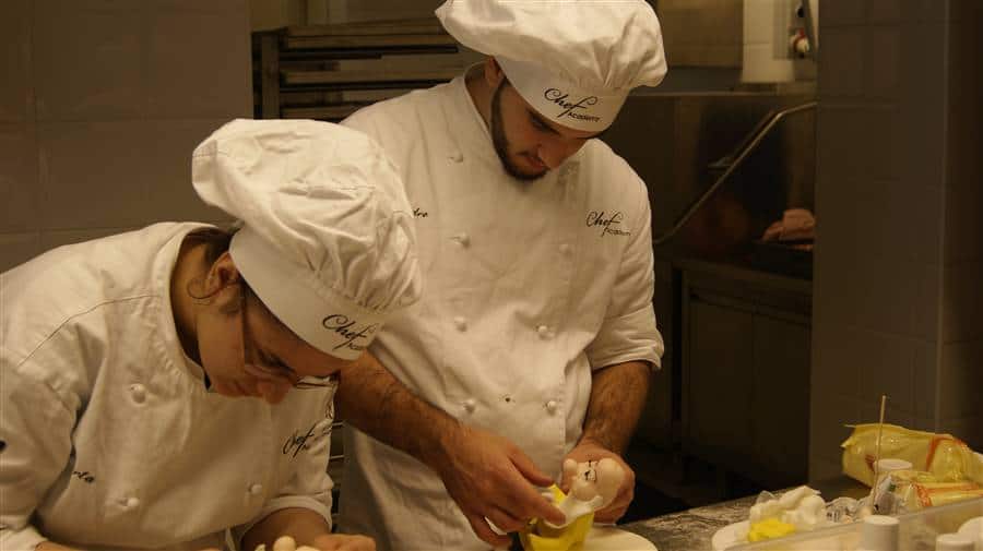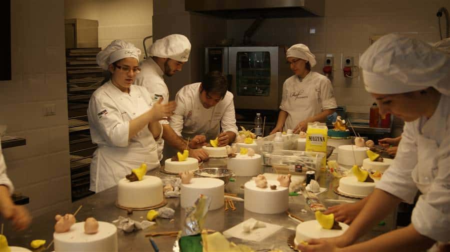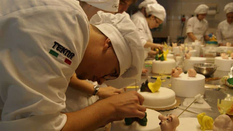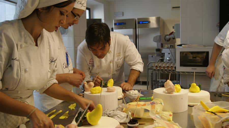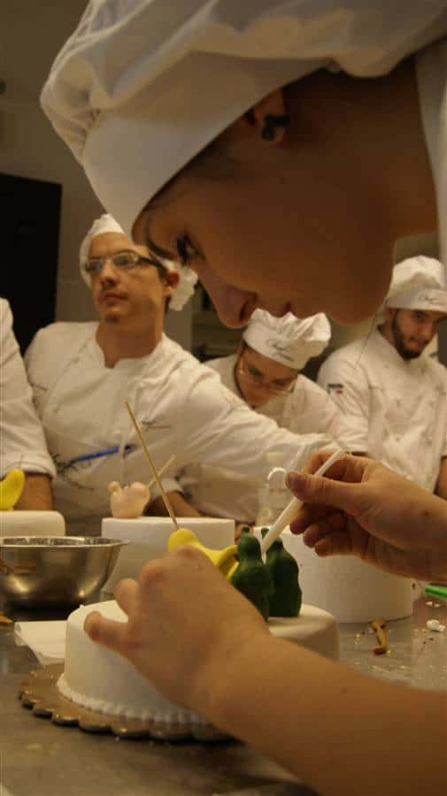 Pastry Chef Program lesson with Master Cristian Giardina, member of the Italian Federation of Pastry Chefs, coach of the Italian Team Cake Designer for the World Championship 2015 during the construction phase of handmade  using the technique of 3D modeling. The students of Pastry Course 14th and 15th edition working with one of the most popular International Cake Designer International and creating, with his teachings, real masterpieces.