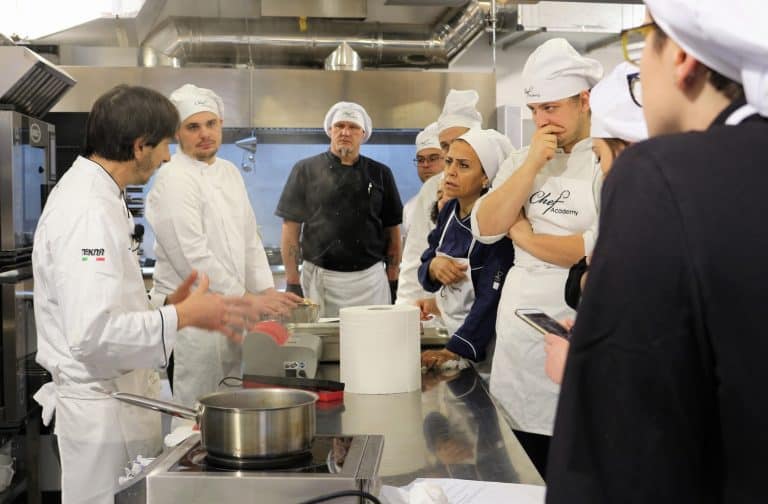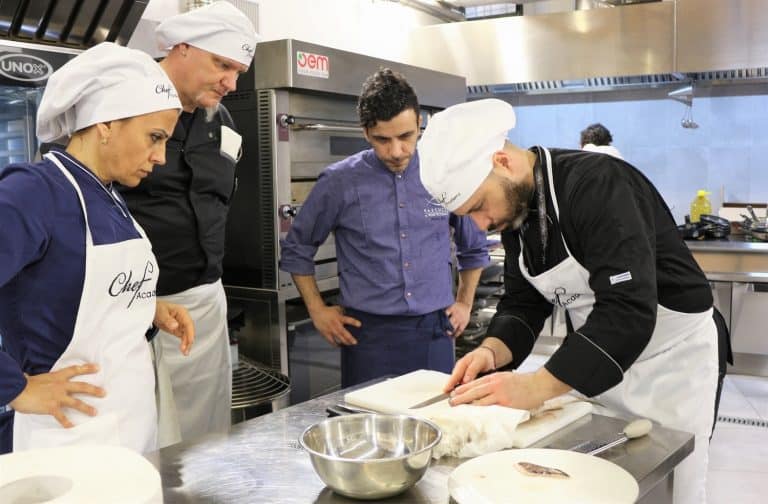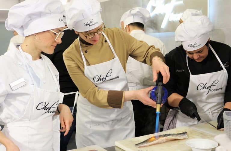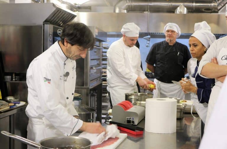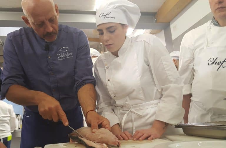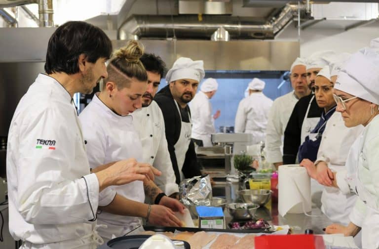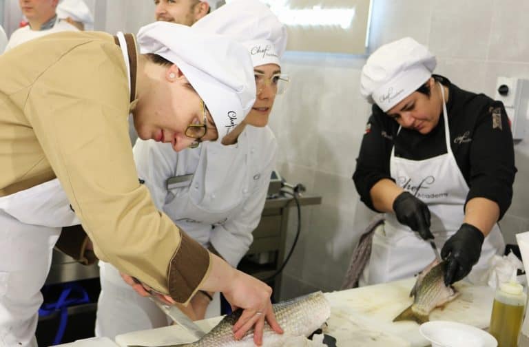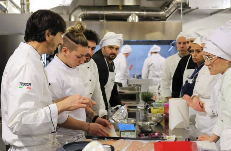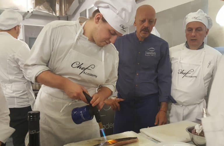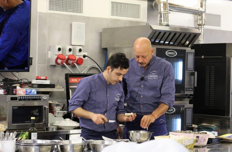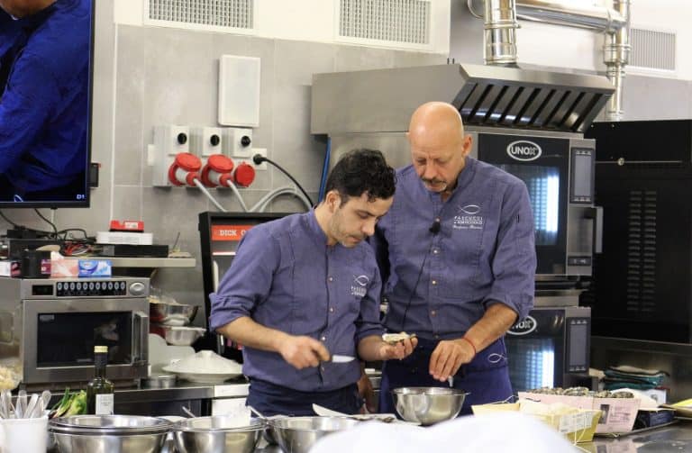Una MasterClass completamente pratica dove 20 partecipanti provenienti da tutta Italia e dall’estero hanno potuto realizzare gomito a gomito con gli Chef i piatti stellati proposti nel percorso operativo. La MasterClass ha messo per la prima volte insieme i due più rappresentativi Chef esperti nella proposta di pesce sia di mare che di acqua dolce.