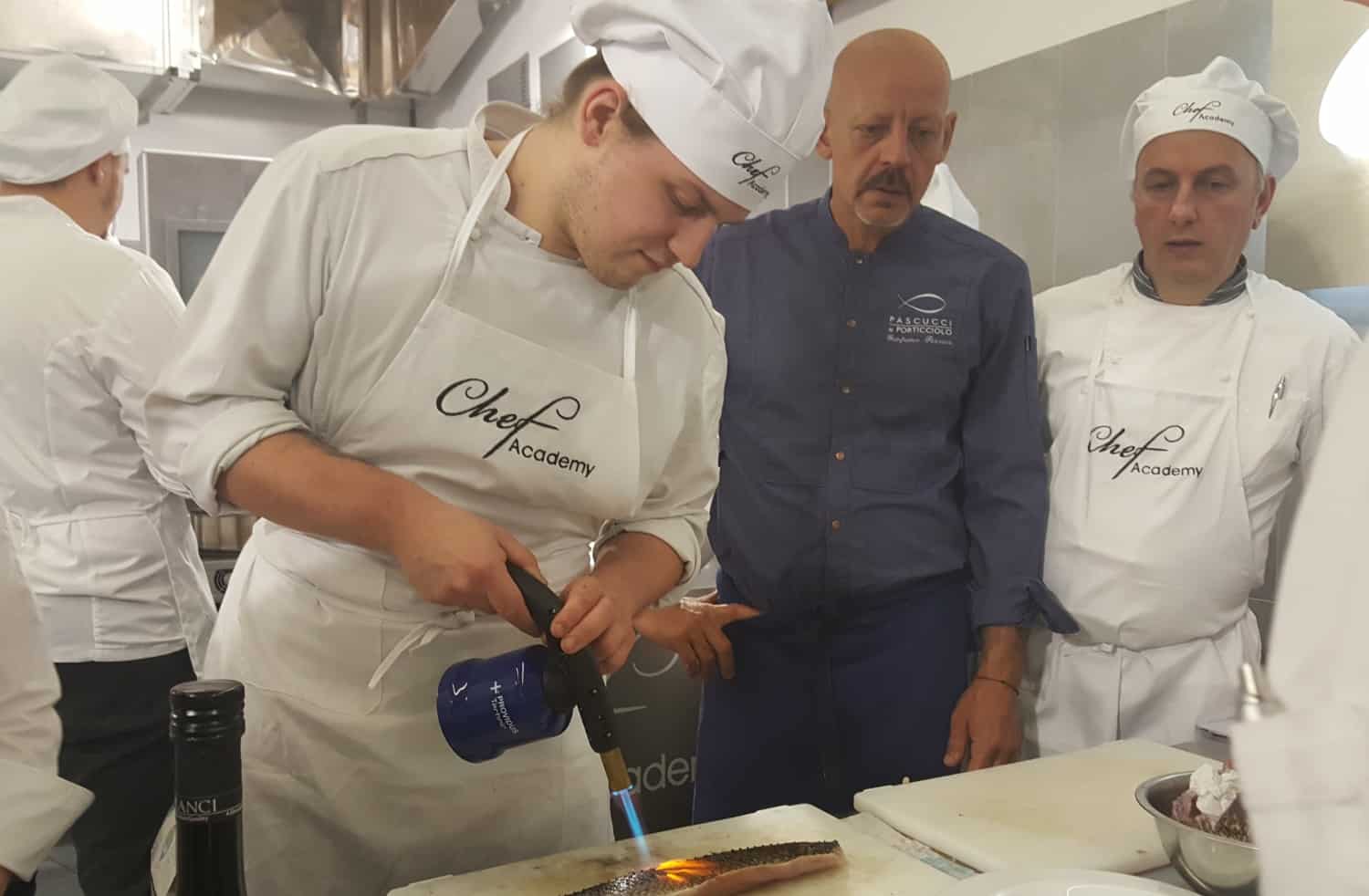 Lo Chef Pascucci del Ristorante 1 stella Michelin “Pascucci al Porticciolo” si è dedicato alla realizzazione di piatti innovativi e ricchi di tecnica, che lo rappresentano e lo riconoscono ai massimi livelli come eccellenza nella realizzazione di piatti a base “mare”.