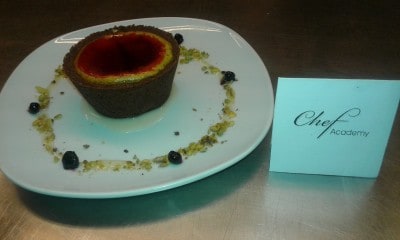 Ingredienti: Per la farcitura cremosa: gr 200 uova intere gr 80 zucchero semolato gr 250 mascorpone gr 250 ricotta 1 bacca vaniglia i limone grattugiato per la base  di frolla al cacao: gr 150 zucchero gr 300 burro gr 50 uova intere gr 400 farina gr 50 cacao amaro Biscuit savoiardo: gr 150 albume gr 185 zucchero gr 130 tuorli gr 35 miele gr 170 farina debole gr 75 fecola di patate coulis di fragole: gr 250 polpa di fragole gr 100 zucchero 1 limone