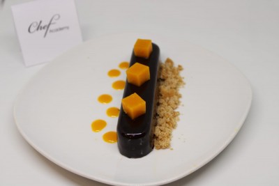 Portare a 83°c latte, tuorli e pasta nocciole. A 70°c aggiungere la gelatina. A 38°c aggiungere la panna semimontata