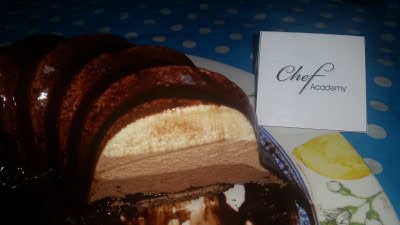 Ingredienti: Ingredienti per 10/13 persone Stampo in silicome 24cm di diametro Crema inglese: 250gr latte 250gr panna 135gr tuorli 140gr zucchero 1/2 bacca di vaniglia 10gr colla di pesce Bavarese fondente: 150gr crema inglese 100gr panna 70%Vol. 75gr cioccolato fondente 55% Bavarese latte: 150gr crema inglese 100 gr panna 70%vol. 75gr cioccolato latte Bavarese bianca: 150gr crema inglese 100gr panna 70%vol. 60gr cioccolato bianco 15 gr burro di cacao