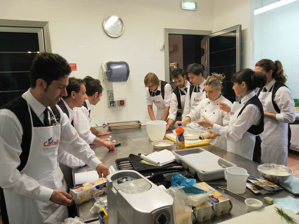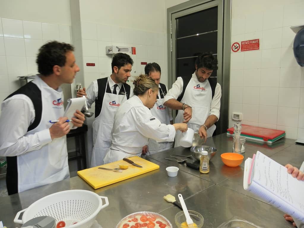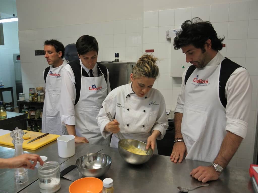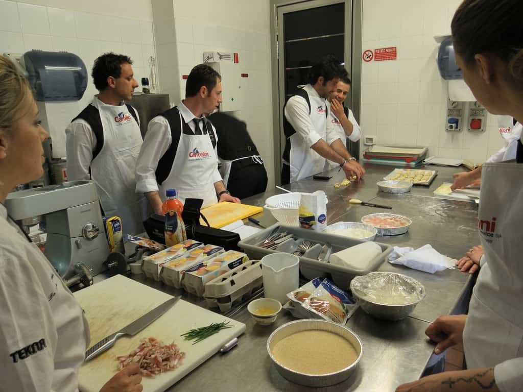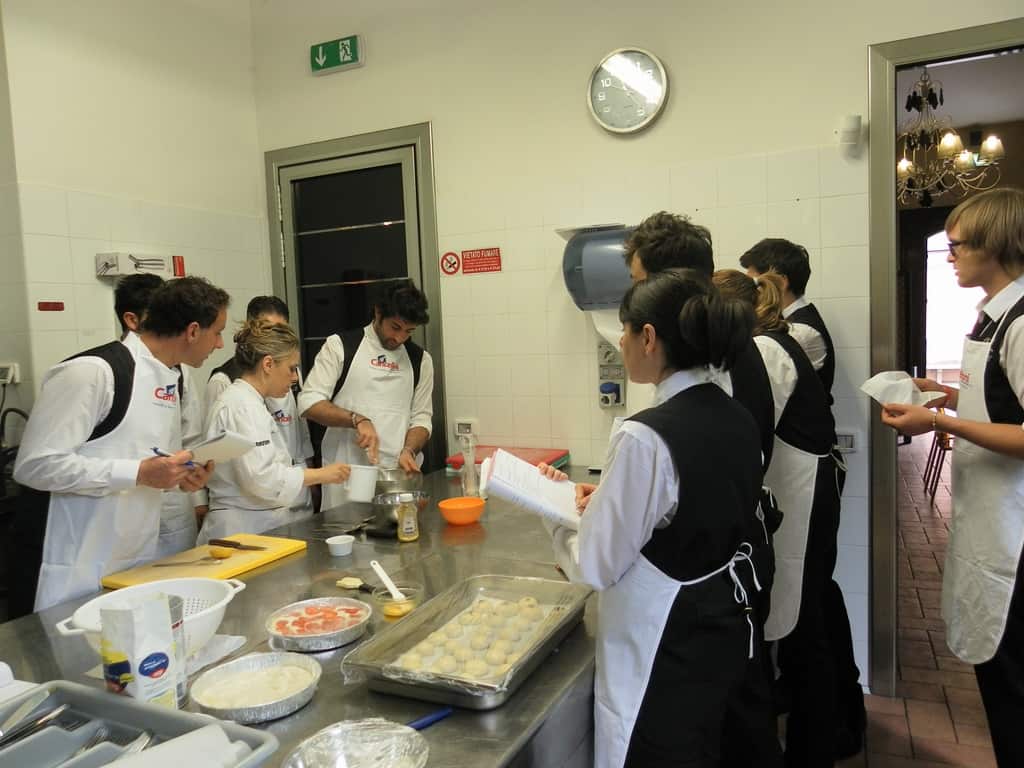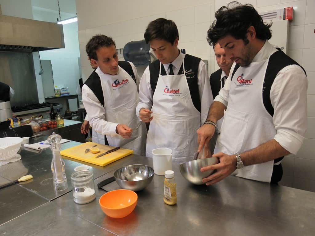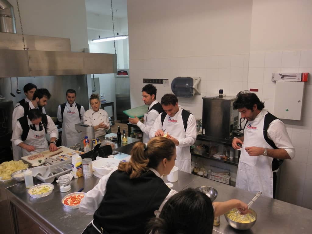 Gli allievi del corso ‘Addetto qualificato di sala ristorante’ (MAÎTRE) alla loro prima lezione in cucina (delle due previste nel corso) con la Chef Iside de Cesare.
