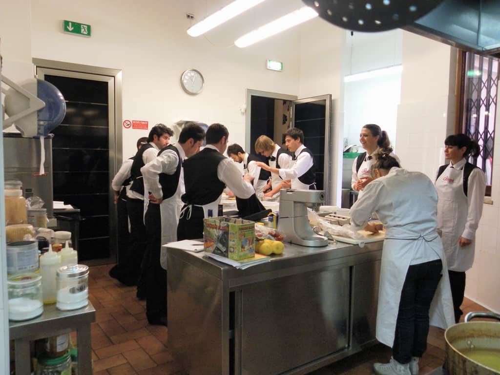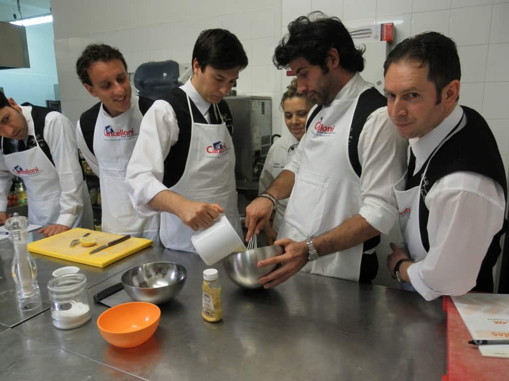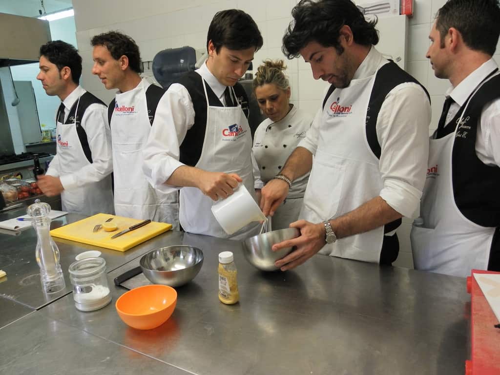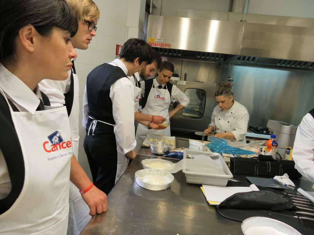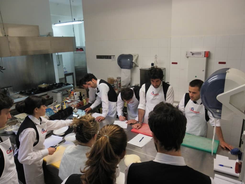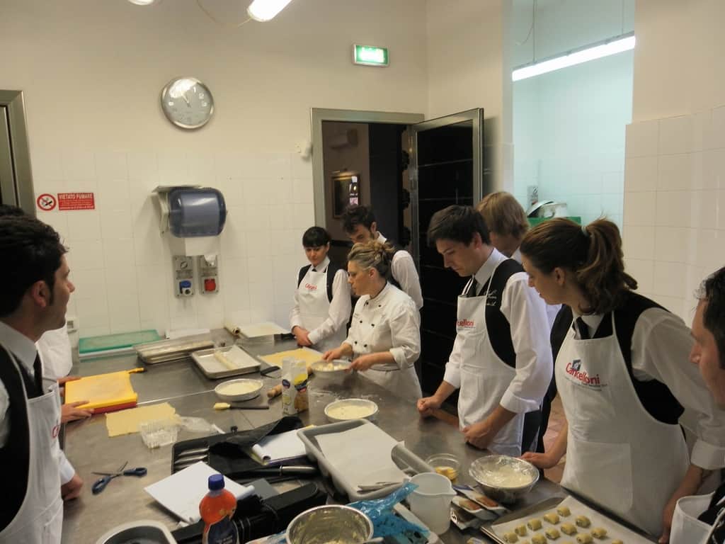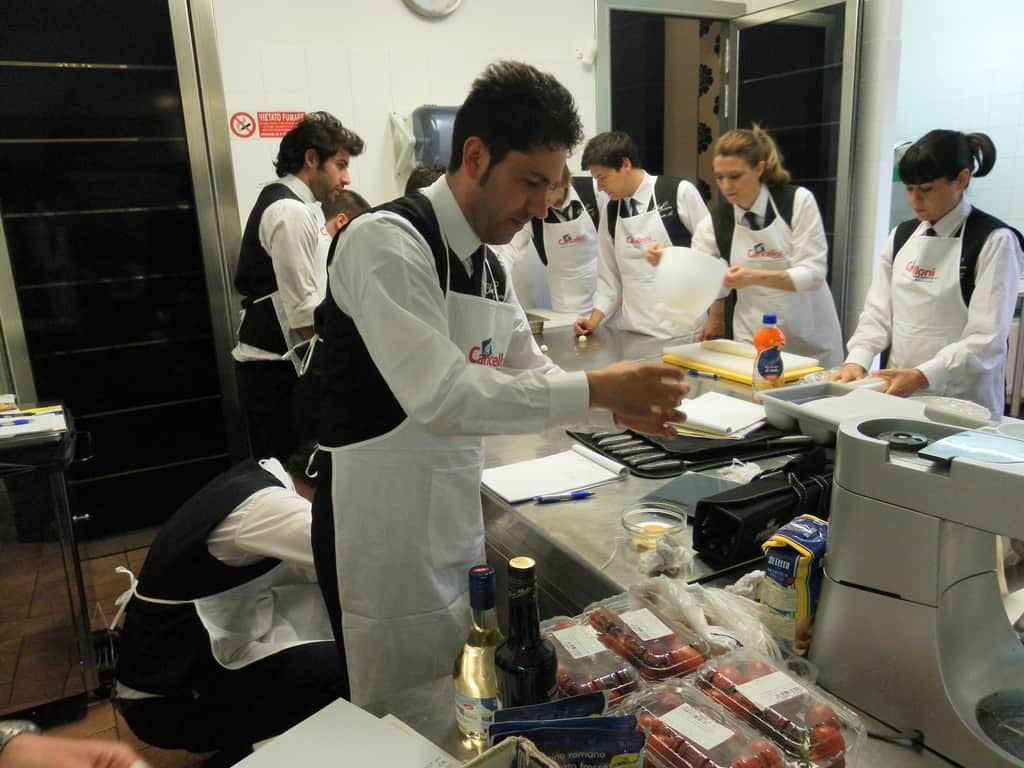 Gli allievi del corso ‘Addetto qualificato di sala ristorante’ (MAÎTRE) alla loro prima lezione in cucina (delle due previste nel corso) con la Chef Iside de Cesare.