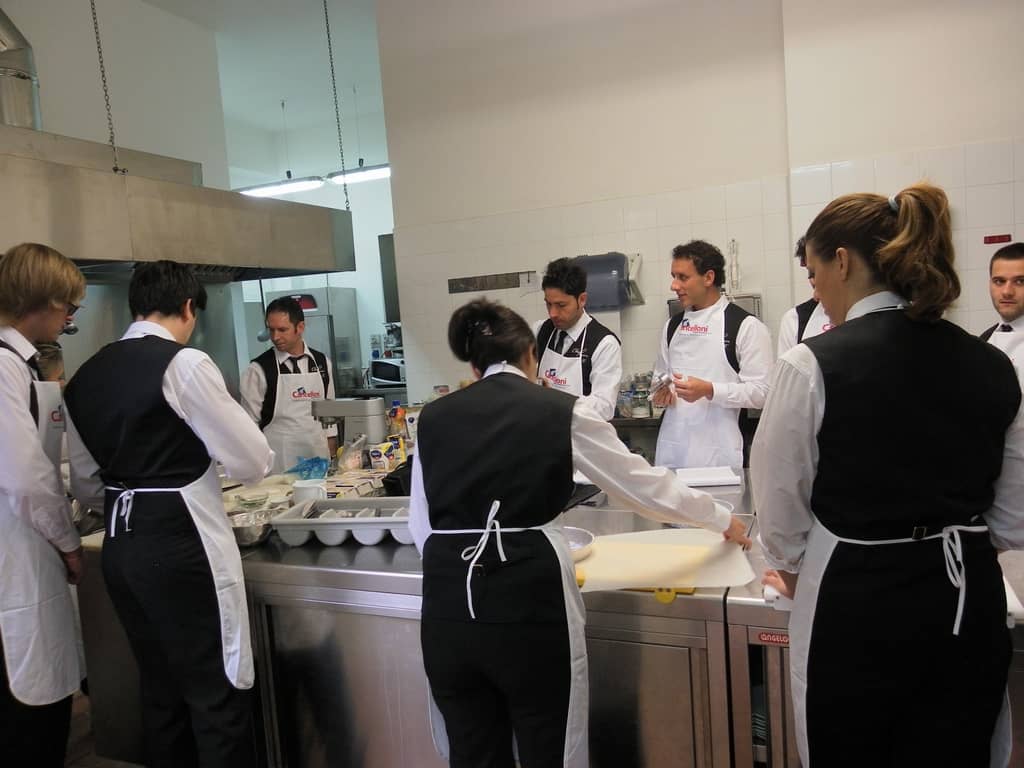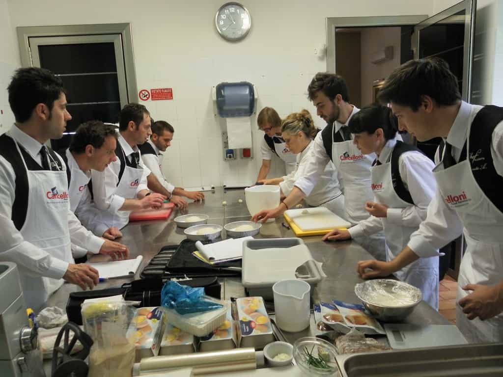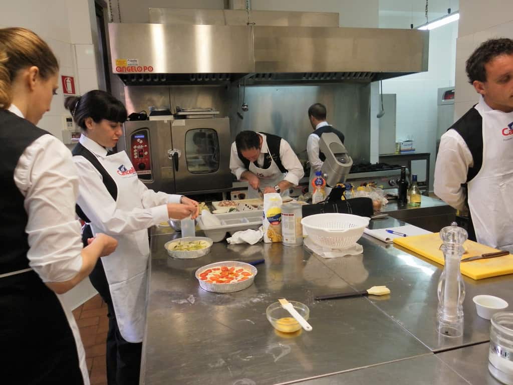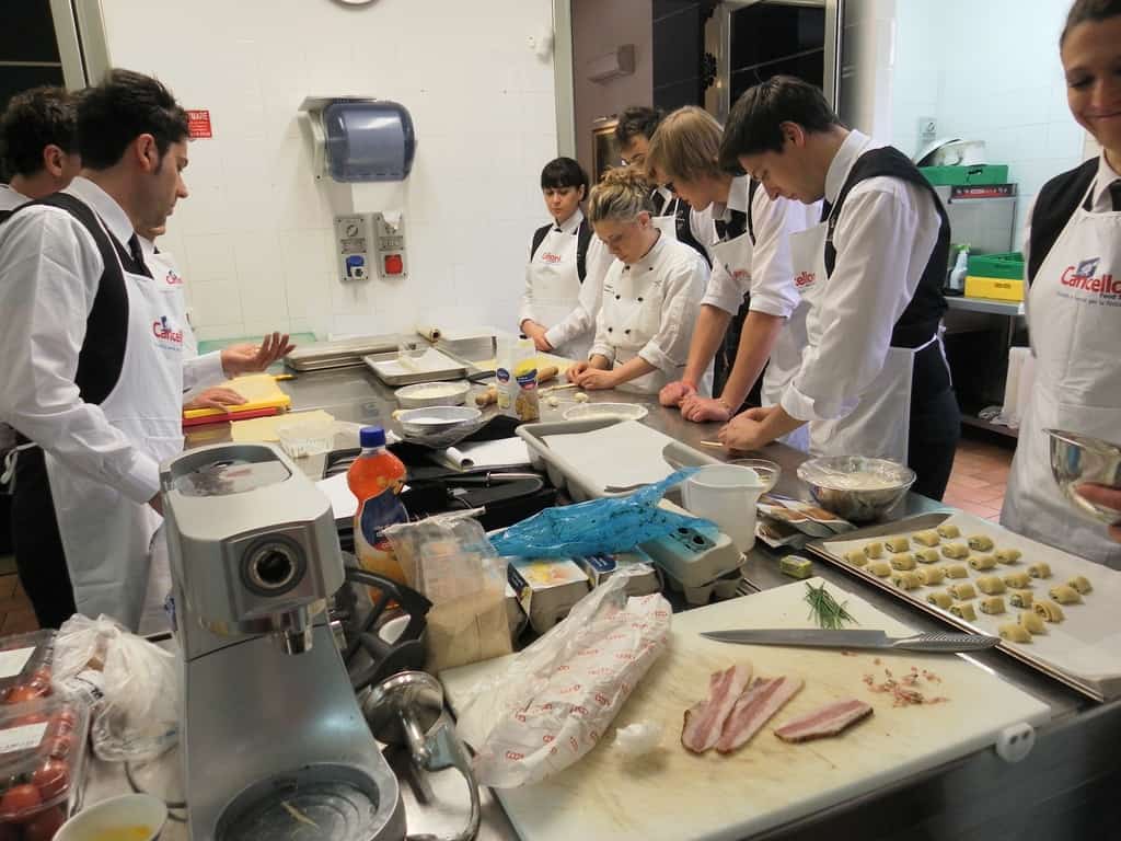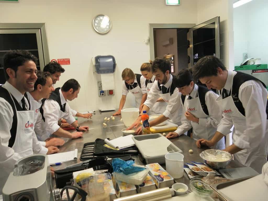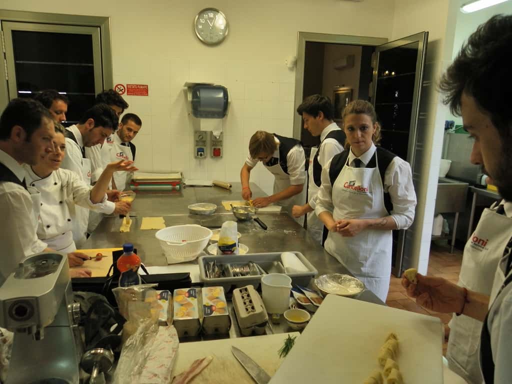 Gli allievi del corso ‘Addetto qualificato di sala ristorante’ (MAÎTRE) alla loro prima lezione in cucina (delle due previste nel corso) con la Chef Iside de Cesare.