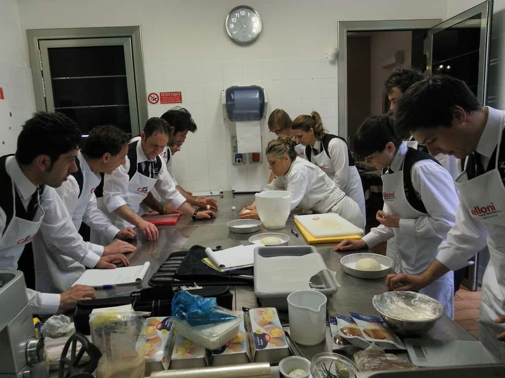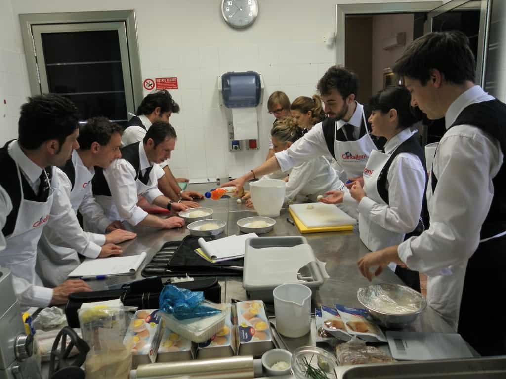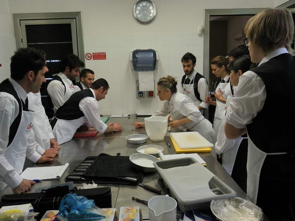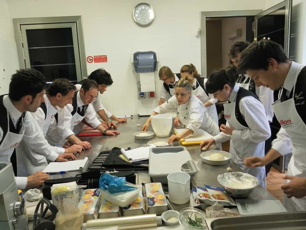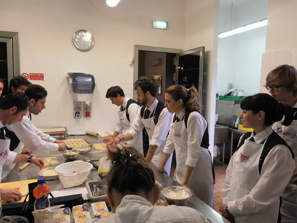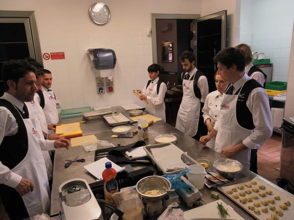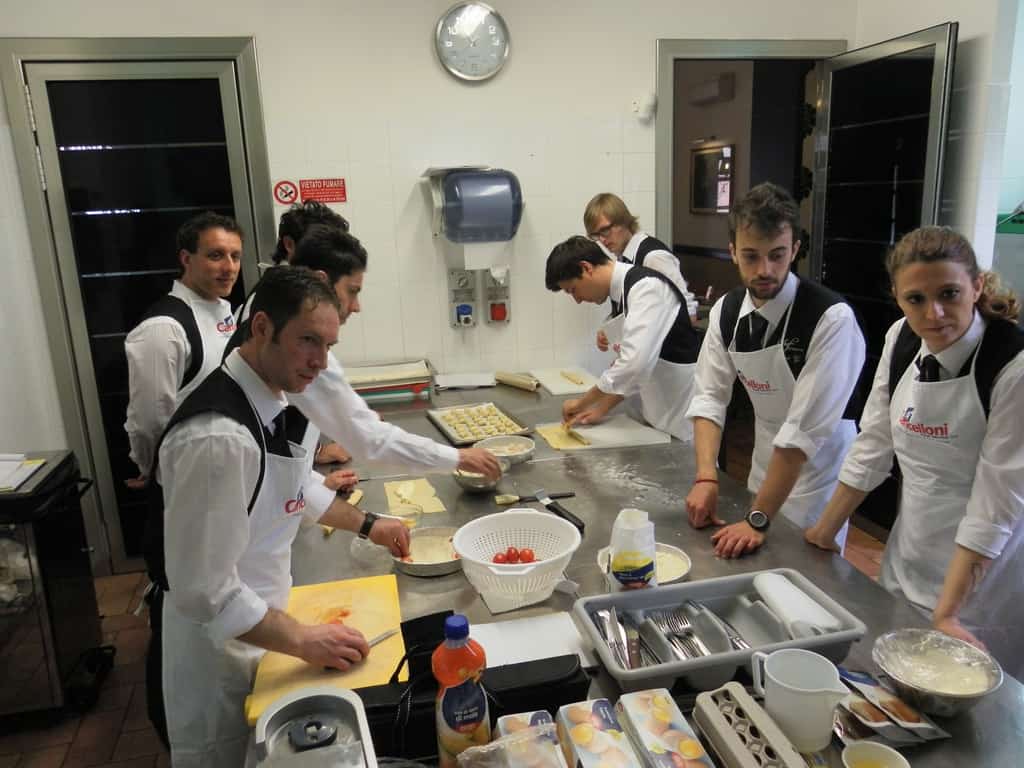 Gli allievi del corso ‘Addetto qualificato di sala ristorante’ (MAÎTRE) alla loro prima lezione in cucina (delle due previste nel corso) con la Chef Iside de Cesare.