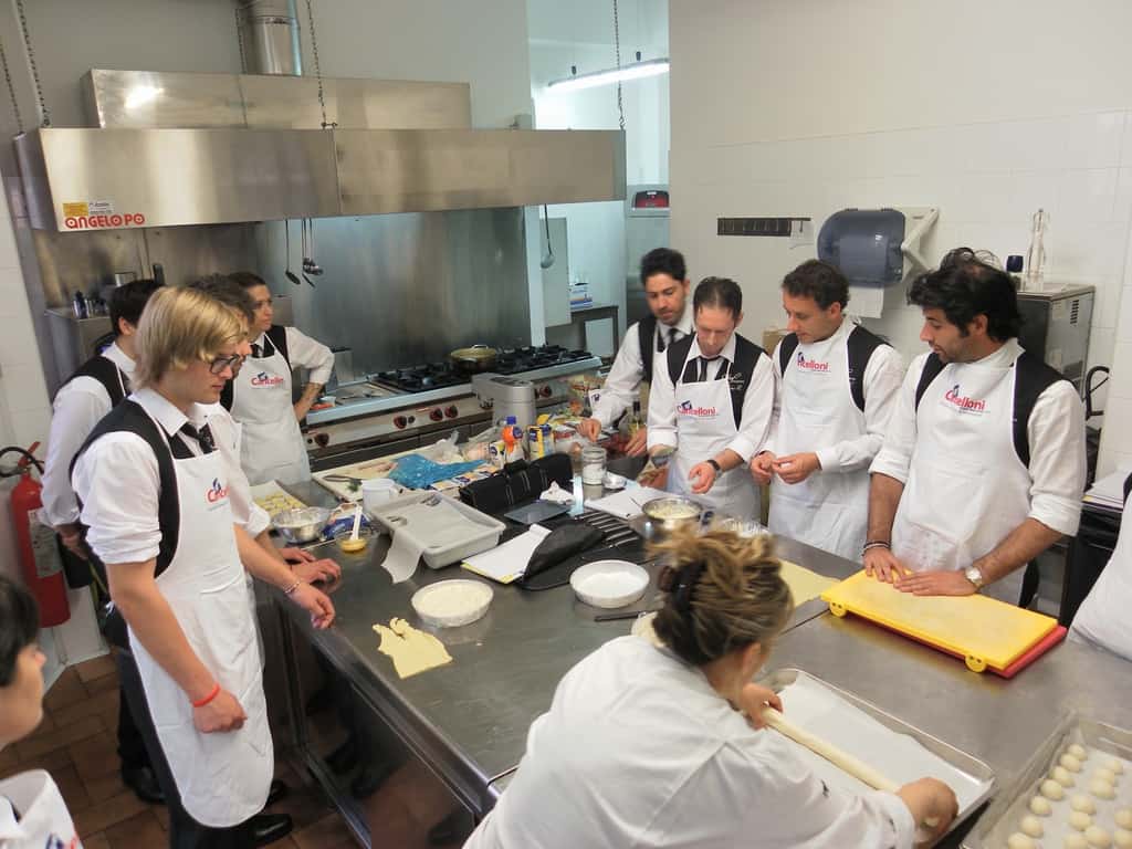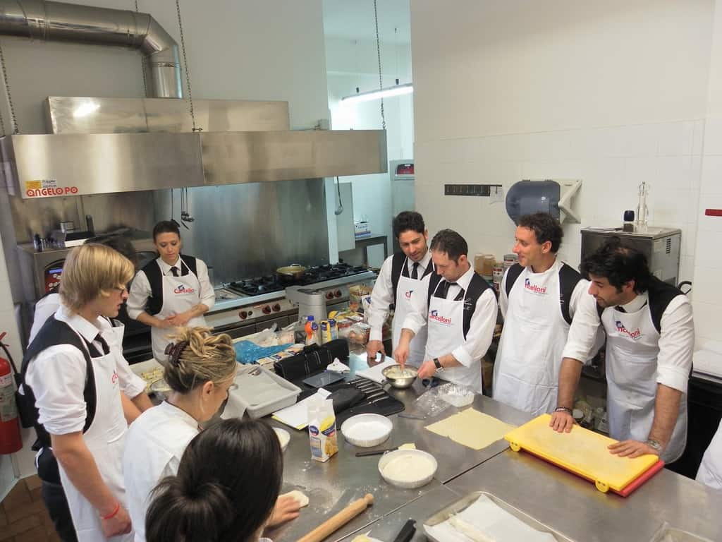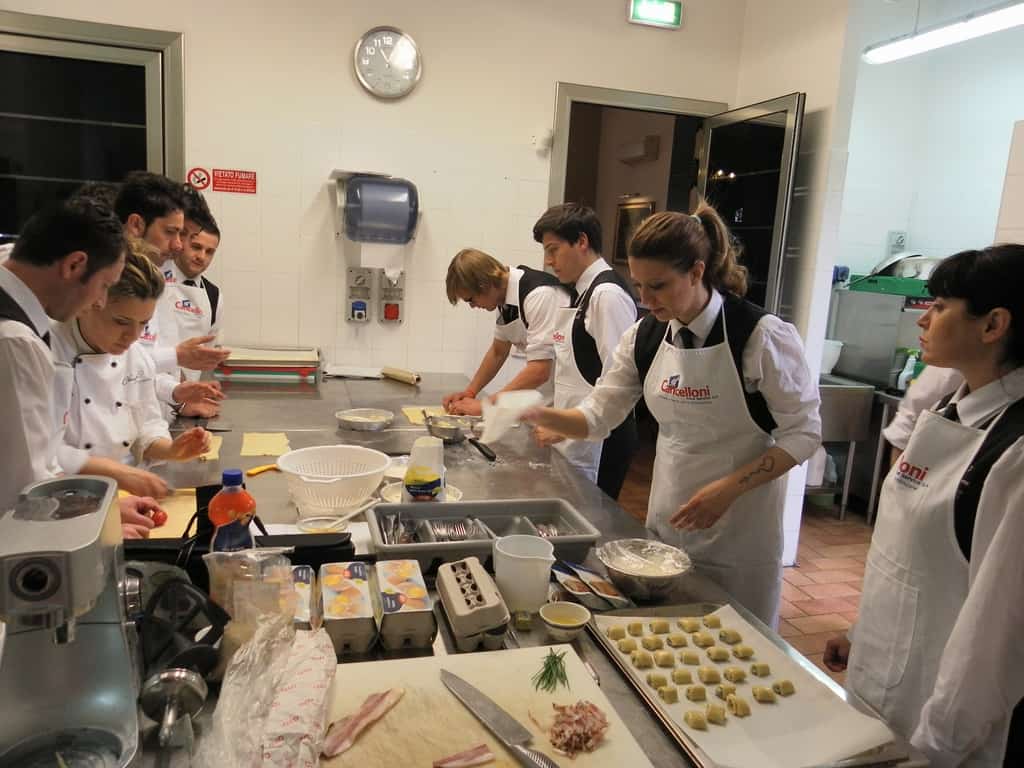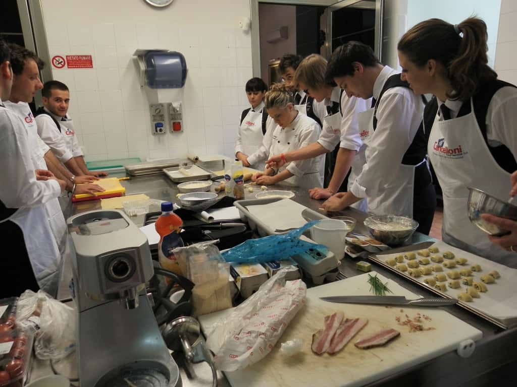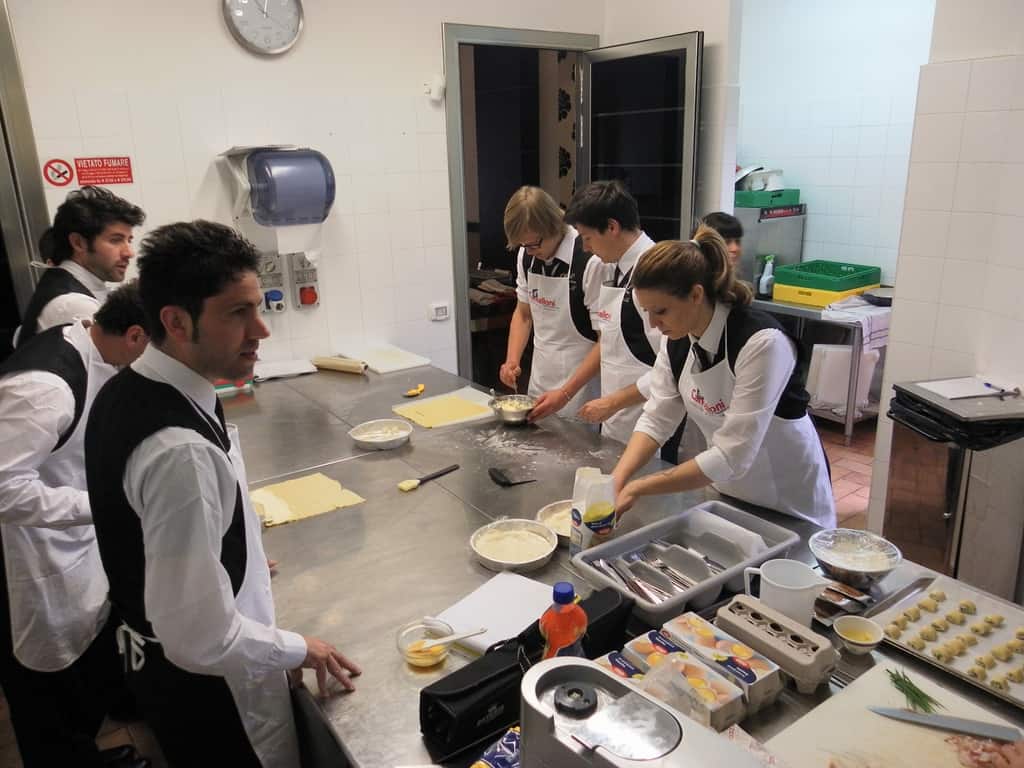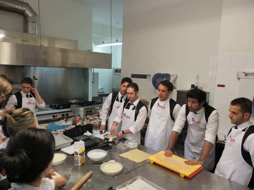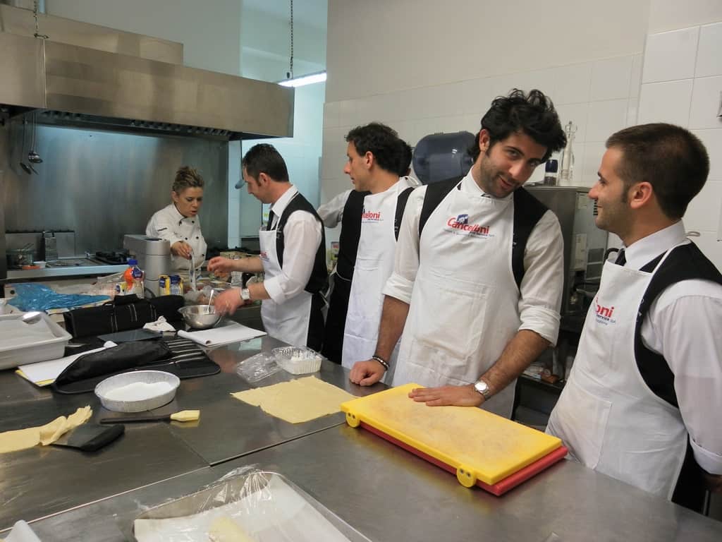 Gli allievi del corso ‘Addetto qualificato di sala ristorante’ (MAÎTRE) alla loro prima lezione in cucina (delle due previste nel corso) con la Chef Iside de Cesare.