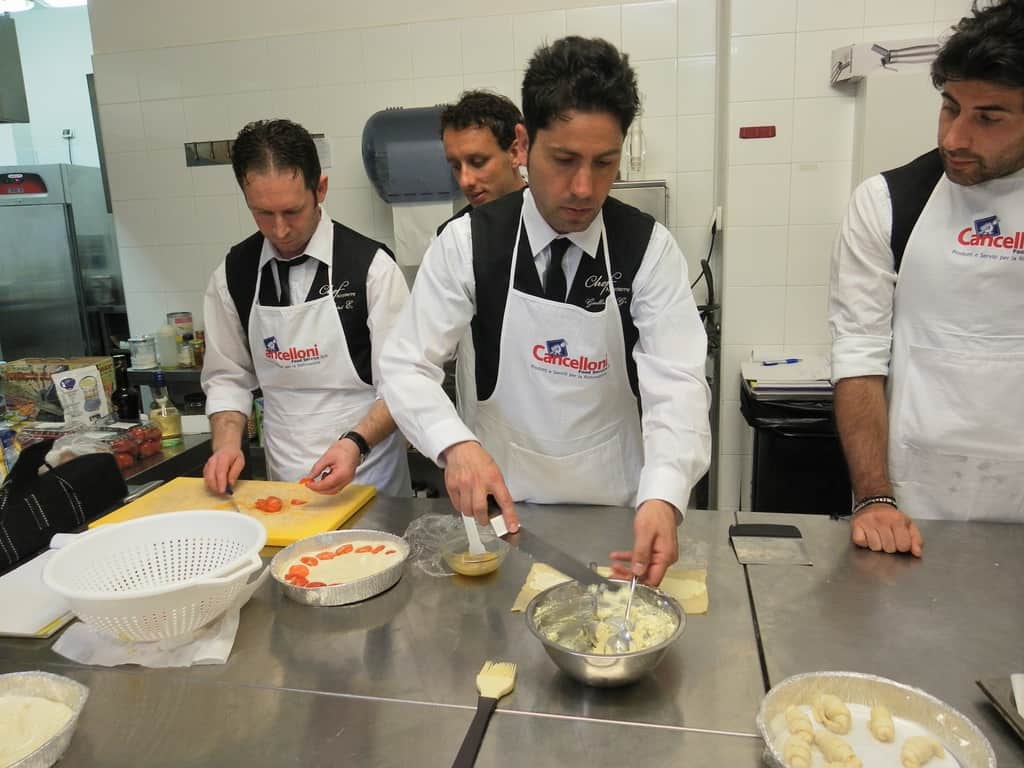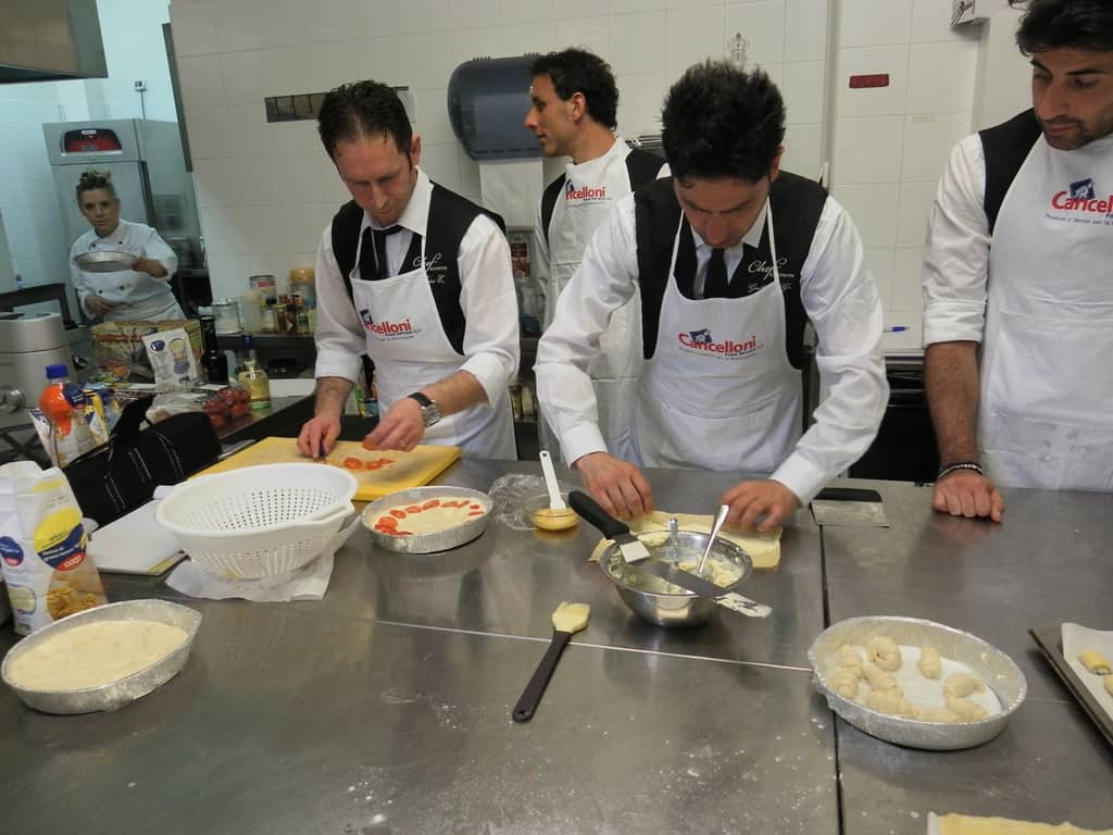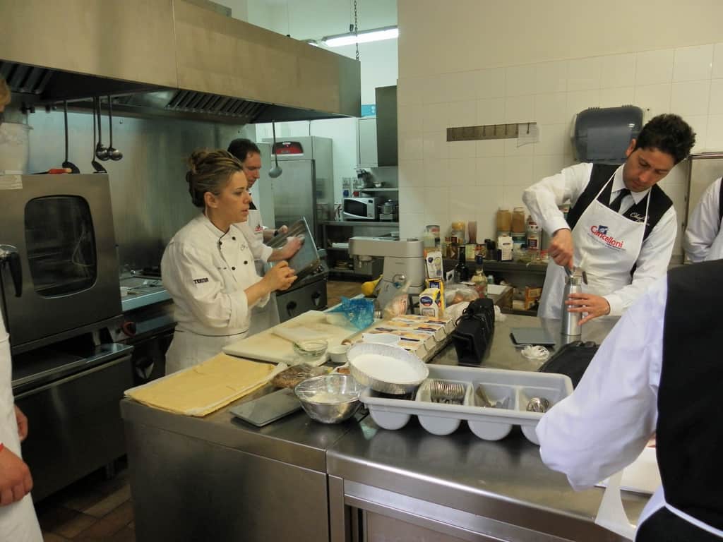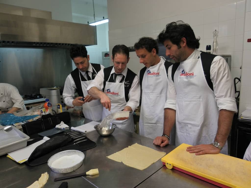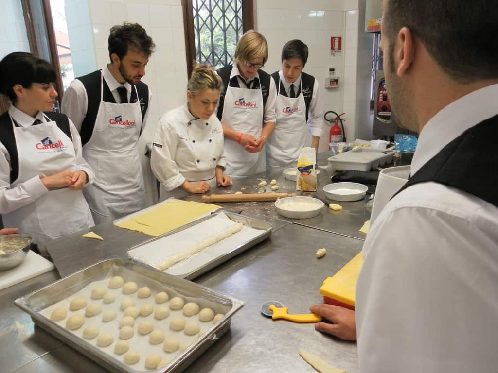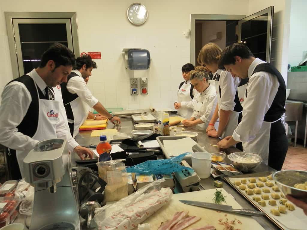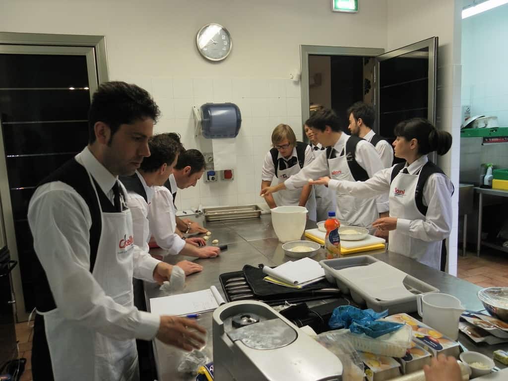 Gli allievi del corso ‘Addetto qualificato di sala ristorante’ (MAÎTRE) alla loro prima lezione in cucina (delle due previste nel corso) con la Chef Iside de Cesare.