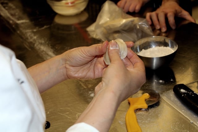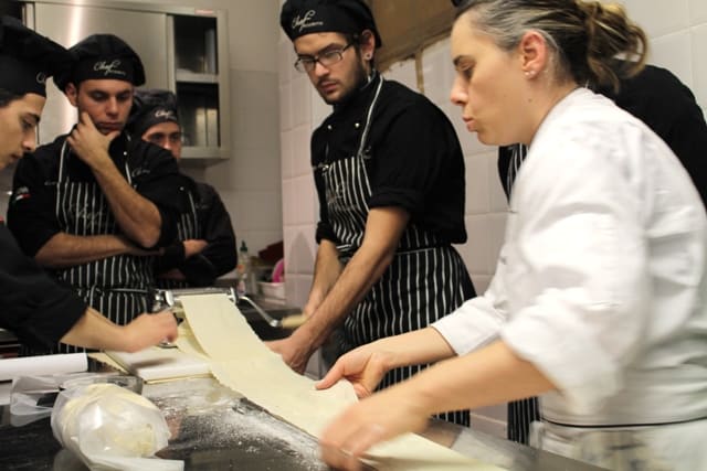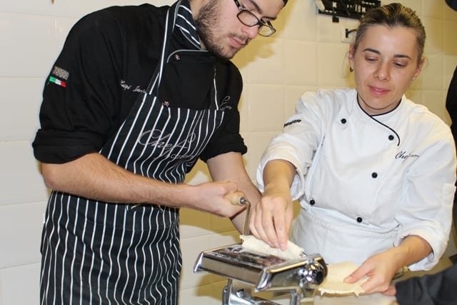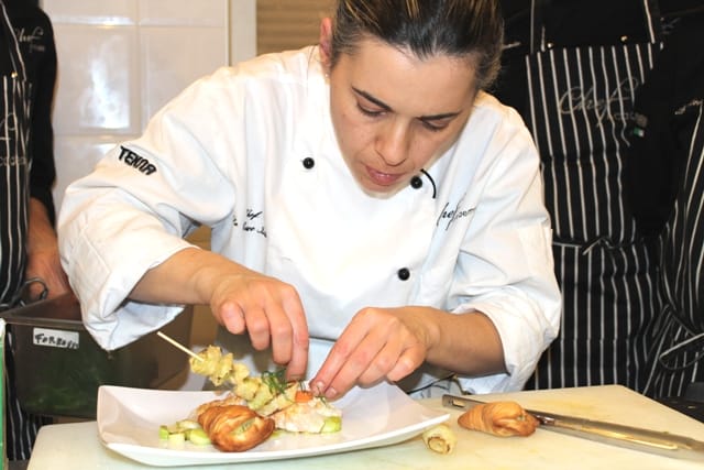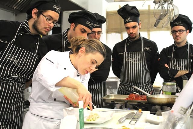 Gli allievi del corso di Cuoco 3°ediz. apprendono dallo Chef Iside De Cesare come preparare piatti a base di crostacei. Ricette sofisticate a base di astice, scampi e gamberi. Delizie dal delicato sapore di mare.