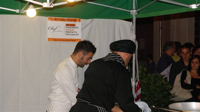 Grande successo della Chef Academy alla Notte Bianca di Terni 2011. Gli Chef e alcuni studenti selezionati hanno offerto gratuitamente ad oltre 1.500 persone una selezione di primi piatti e una degustazione di vini di qualità offerti da uno dei partner della scuola Castello delle Regine. Vedi anche il video.