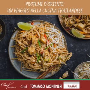 Un’esperienza di 4 ore dedicata ai profumi e ai sapori autentici della cucina thailandese, un viaggio intenso tra equilibrio, freschezza e spezie. Si parte dall’iconico Pad Thai, simbolo dello street food di Bangkok, per poi immergersi nei profumi avvolgenti del Thai Green Curry di pollo, cremoso e aromatico, preparato secondo tradizione. A completare il percorso, gli involtini thailandesi, sia fritti e croccanti che crudi, farciti con verdure fresche, erbe profumate e sapori vivaci. Un’esperienza che unisce tecnica, cultura e gusto, per scoprire e assaporare insieme l’anima della Thailandia, piatto dopo piatto.