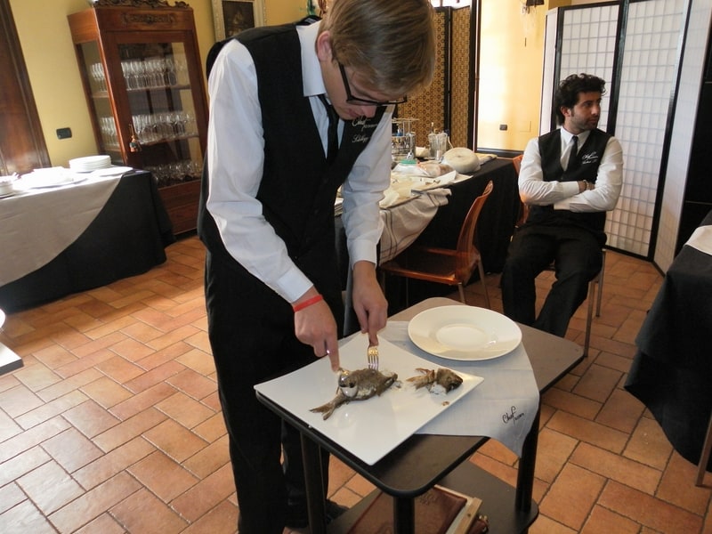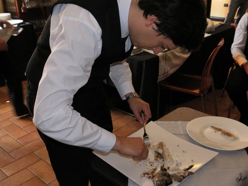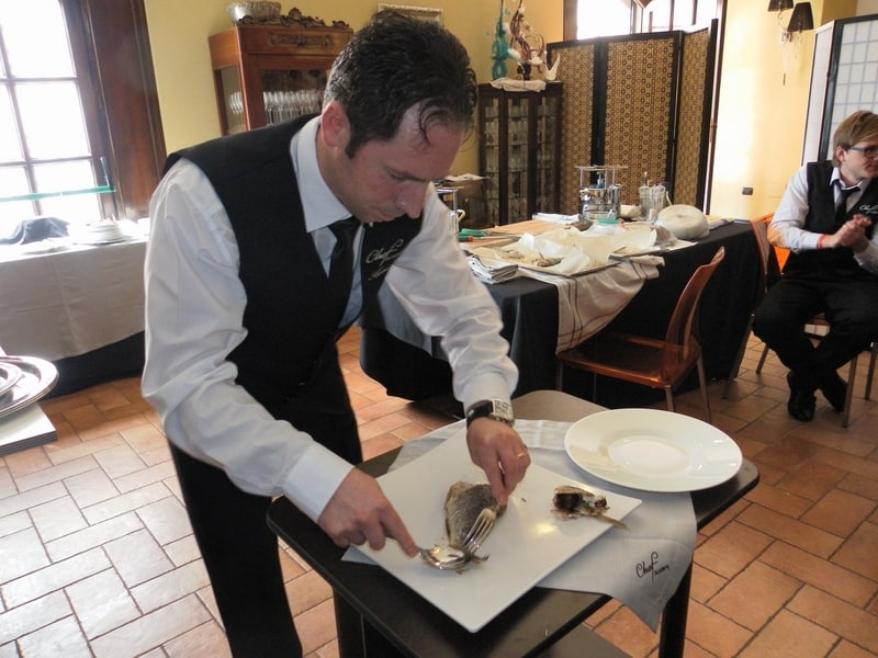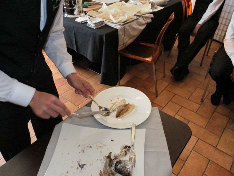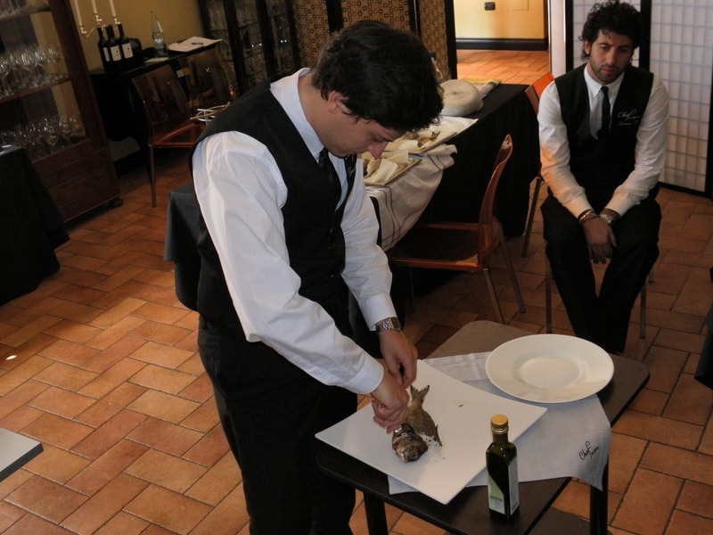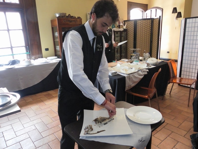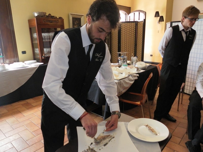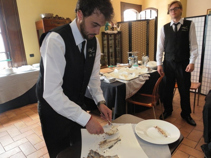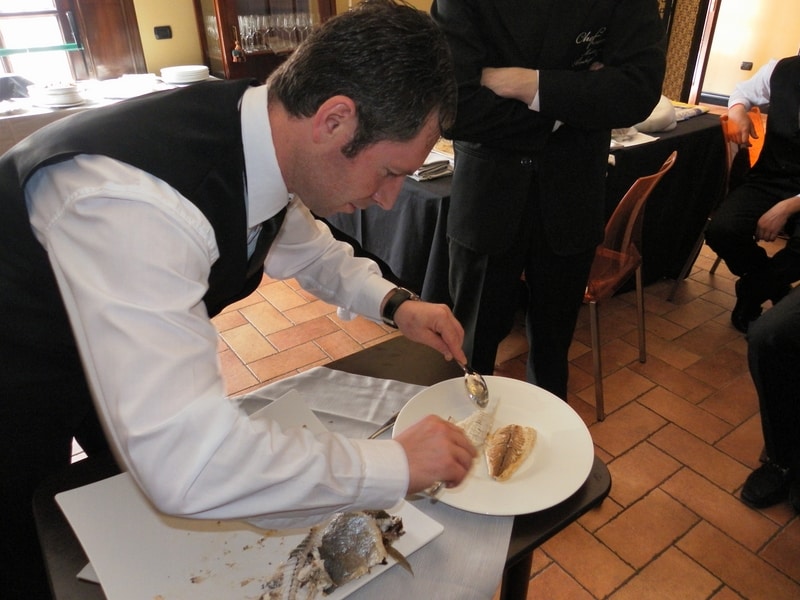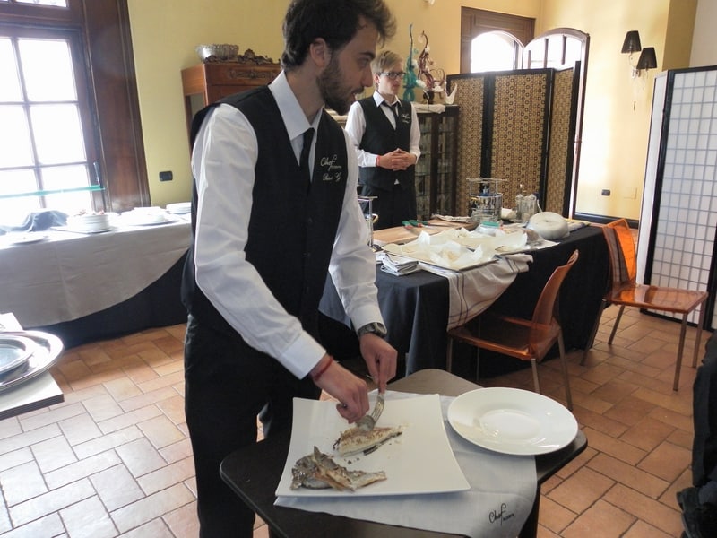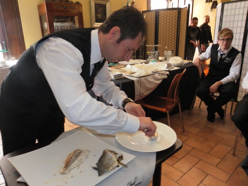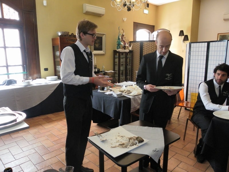 Prova di porzionatura pesce e carne degli allievi del corso ‘Addetto qualificato al servizio in sala’ guidata dal Maître Francesco Ambrogi.