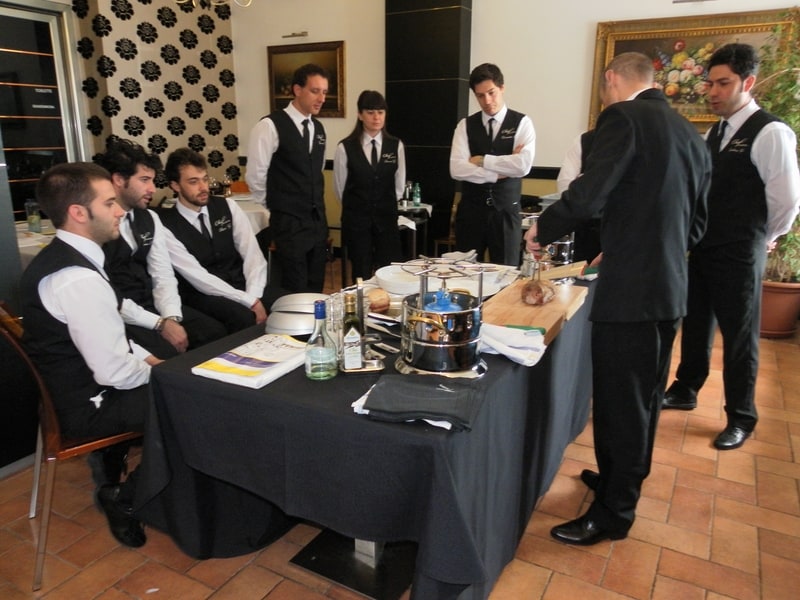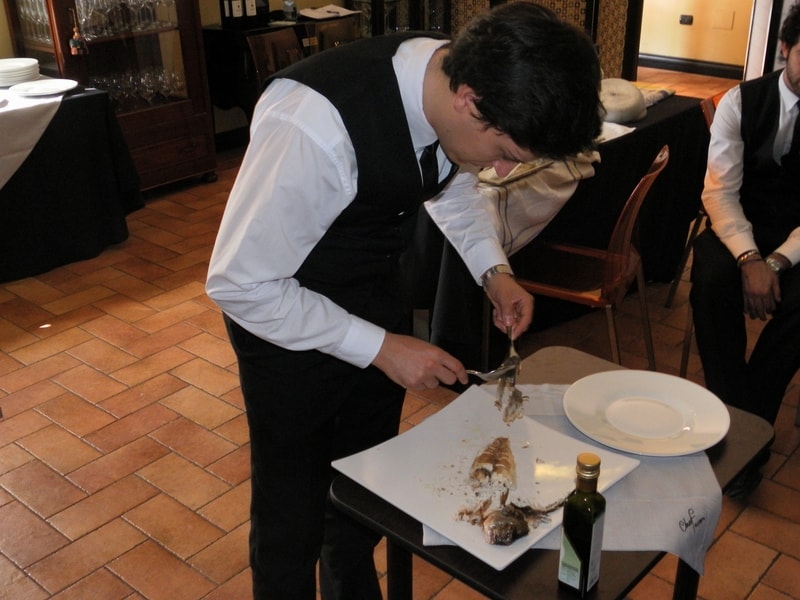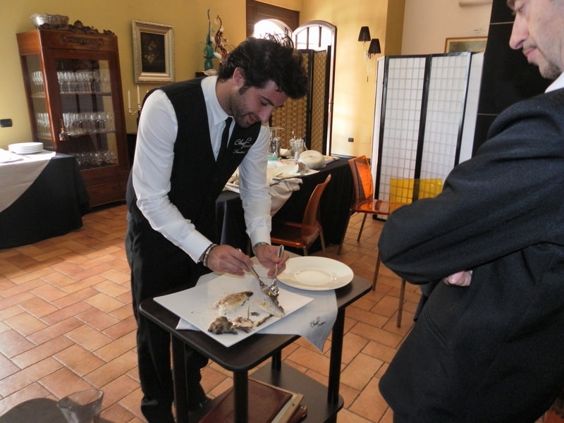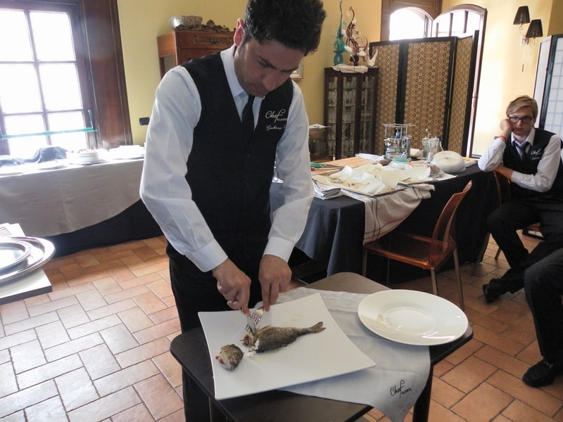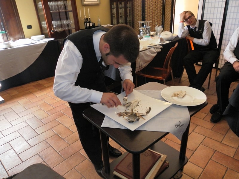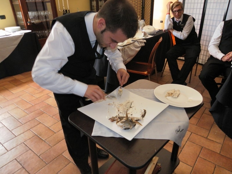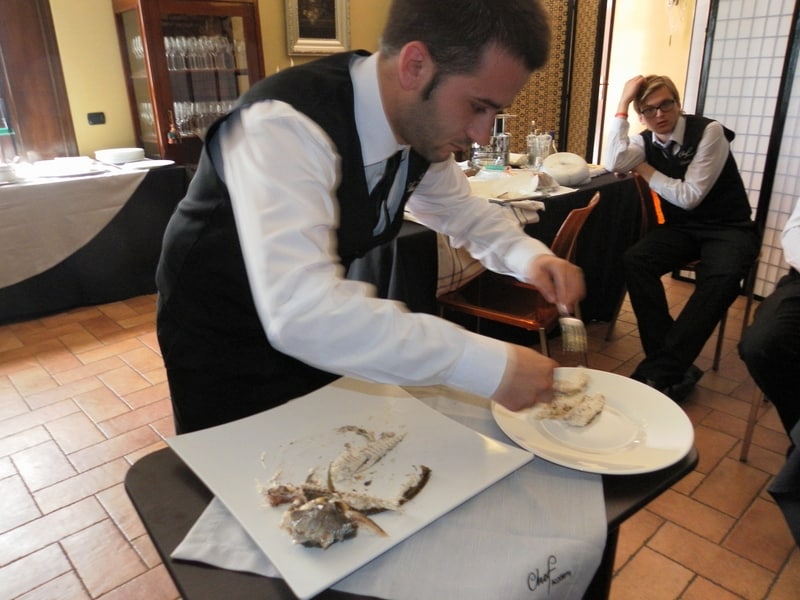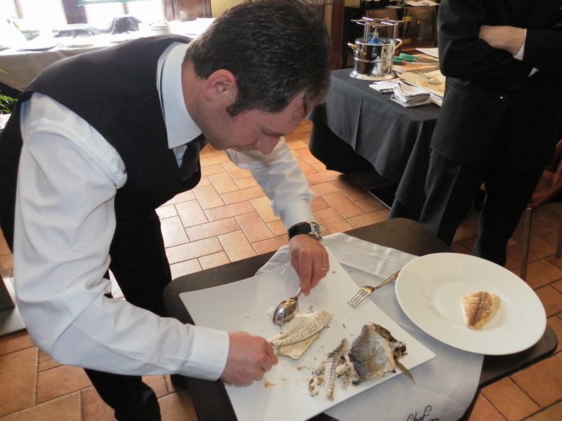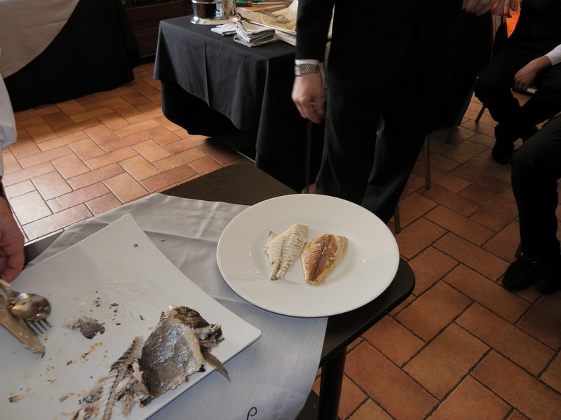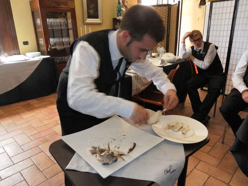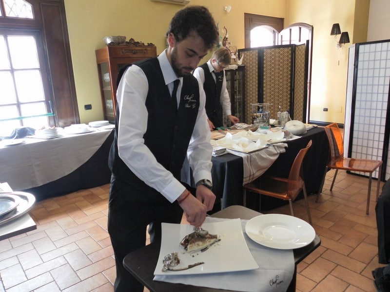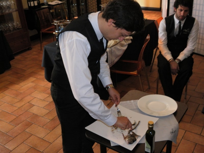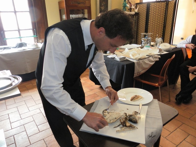 Prova di porzionatura pesce e carne degli allievi del corso ‘Addetto qualificato al servizio in sala’ guidata dal Maître Francesco Ambrogi.