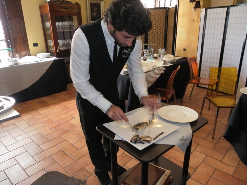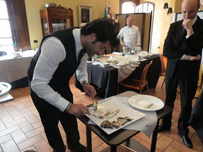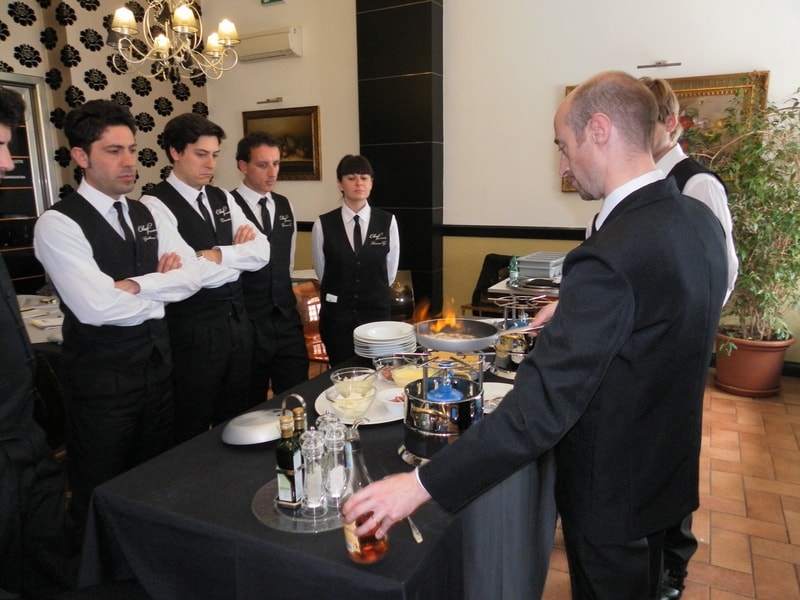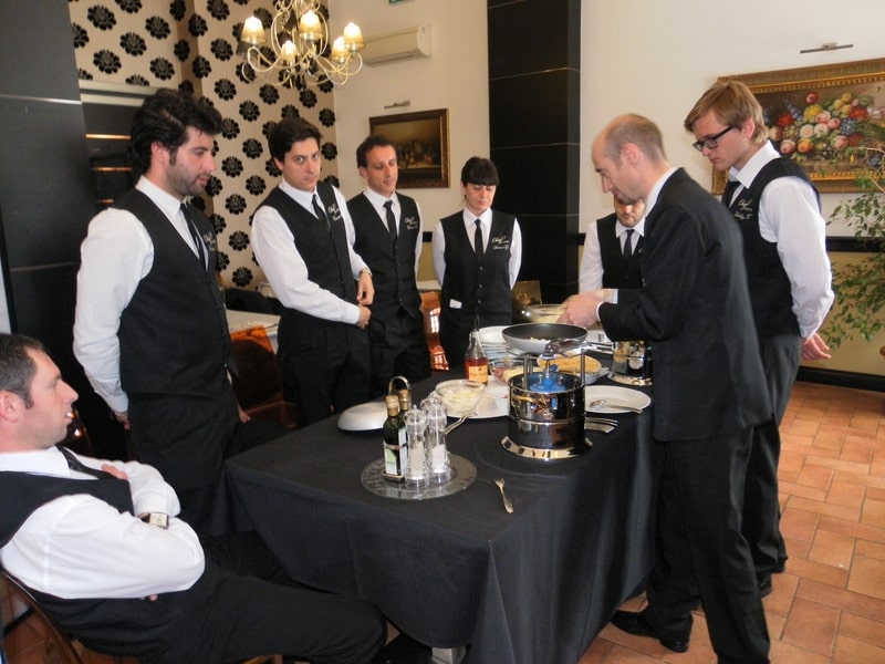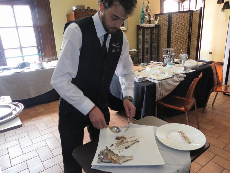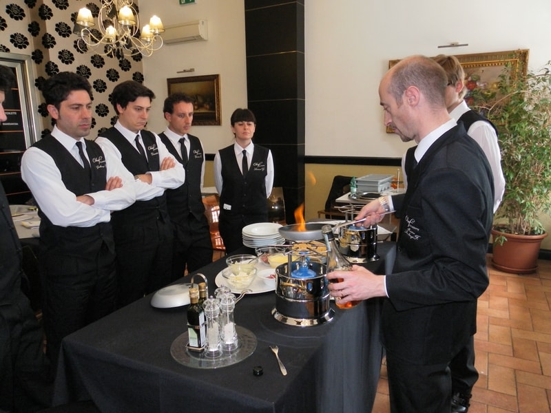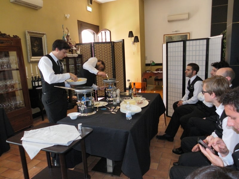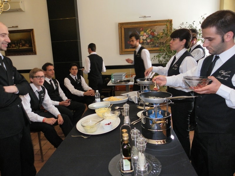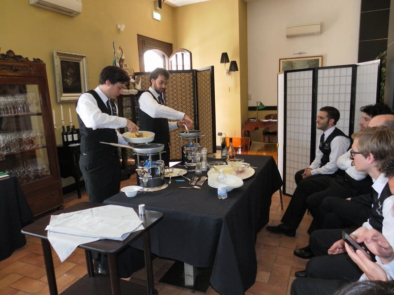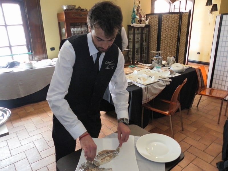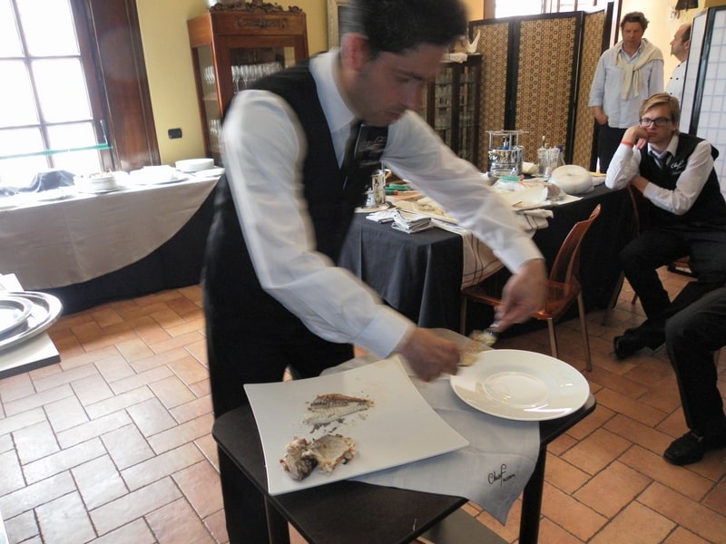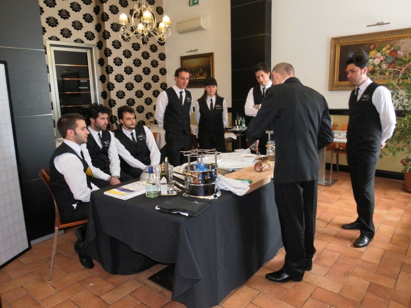 Prova di porzionatura pesce e carne degli allievi del corso ‘Addetto qualificato al servizio in sala’ guidata dal Maître Francesco Ambrogi.