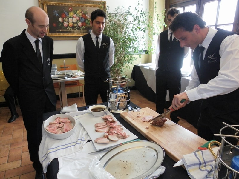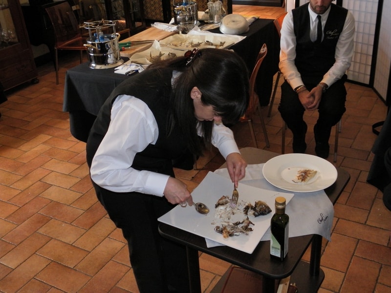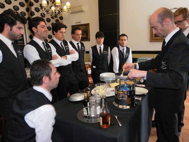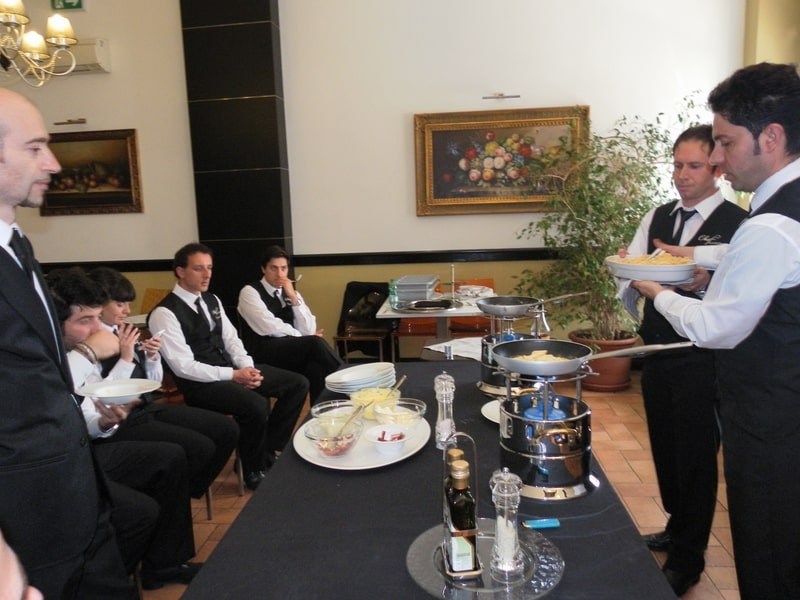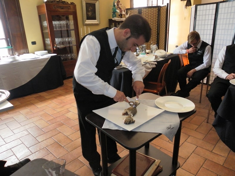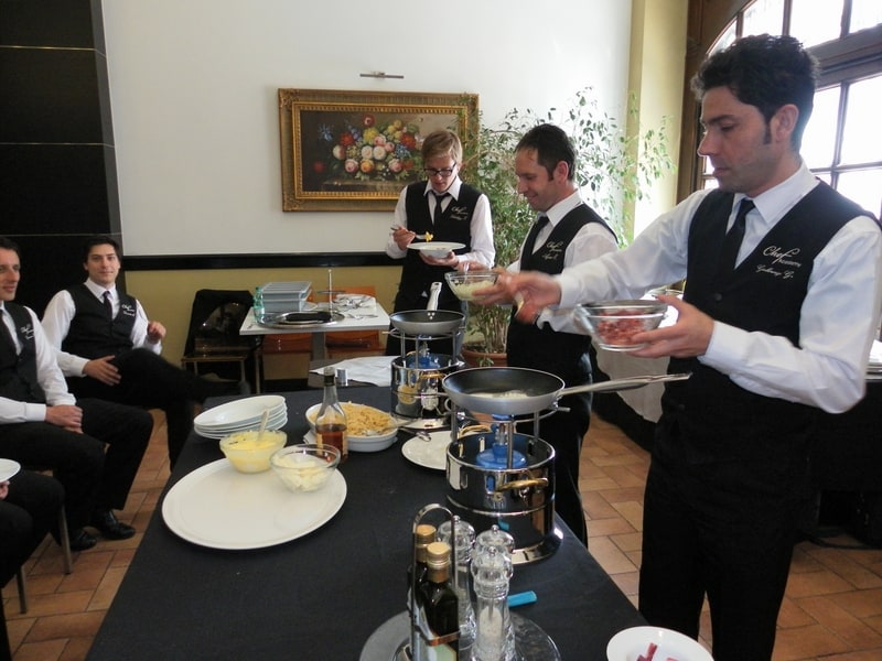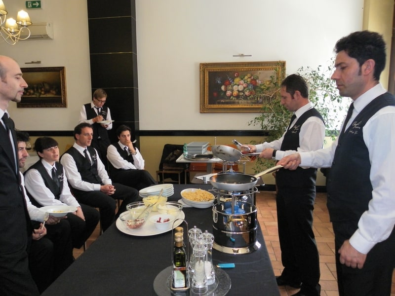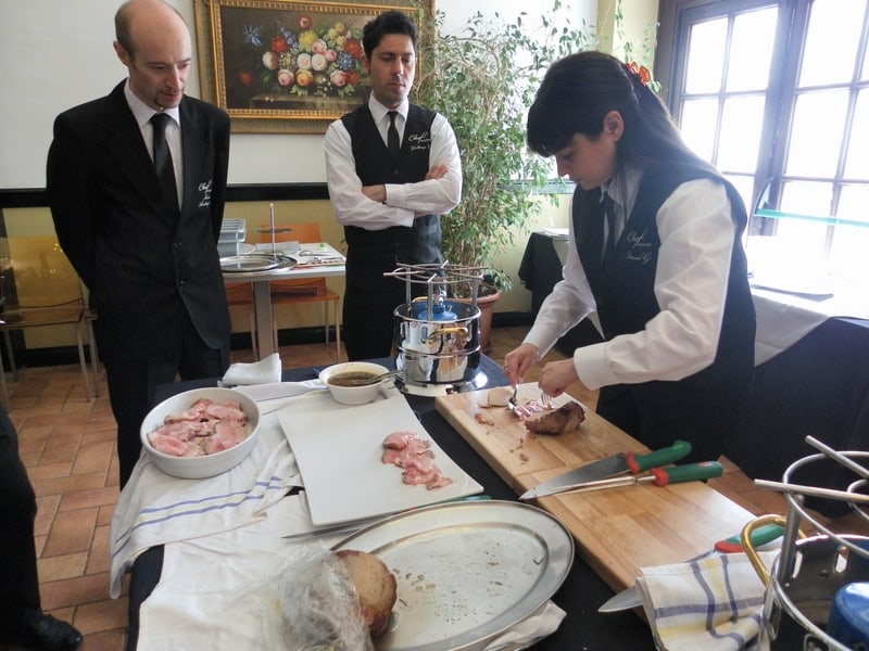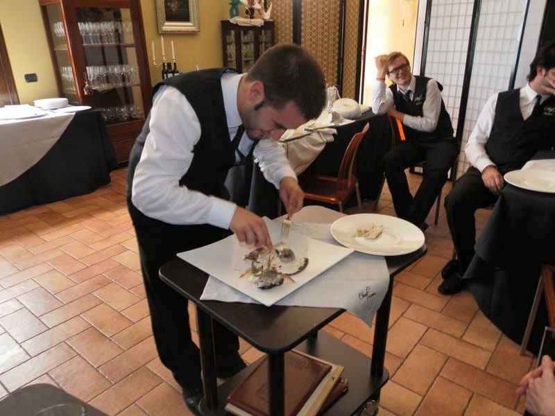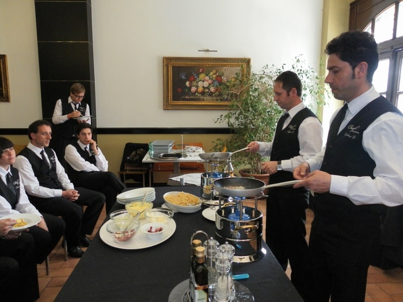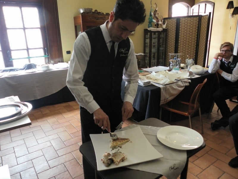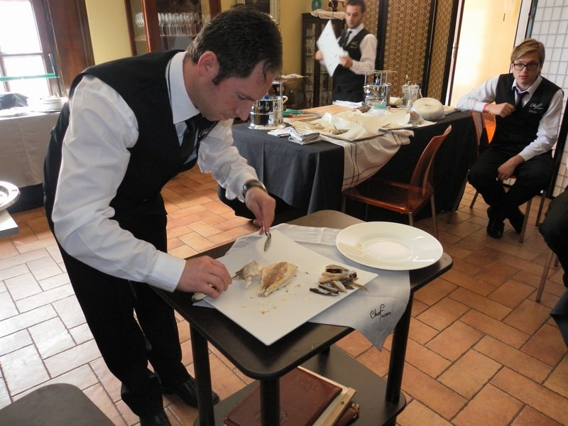Prova di porzionatura pesce e carne degli allievi del corso ‘Addetto qualificato al servizio in sala’ guidata dal Maître Francesco Ambrogi.