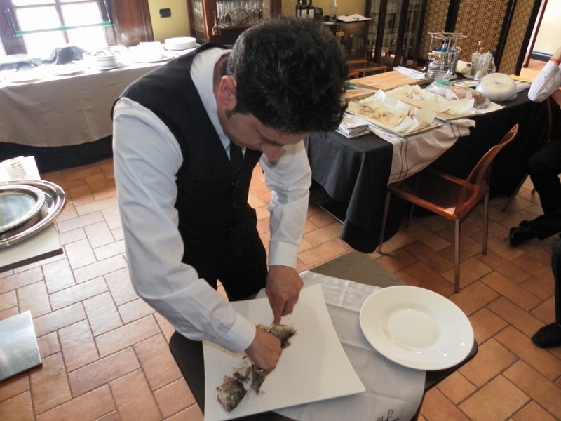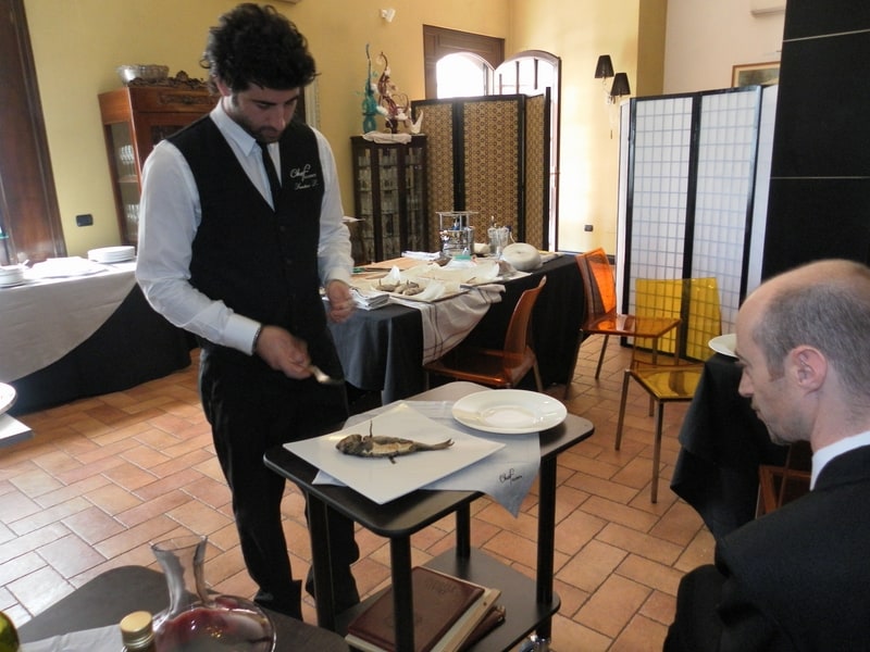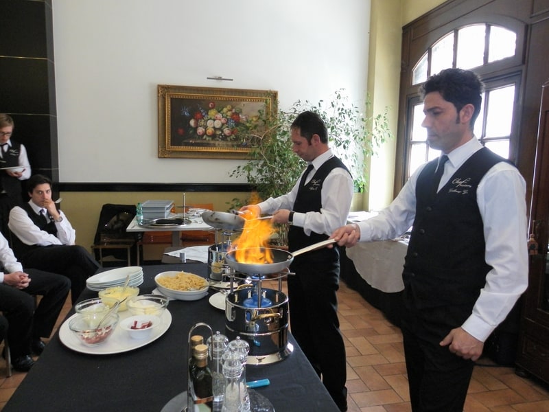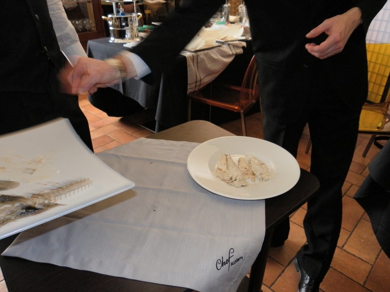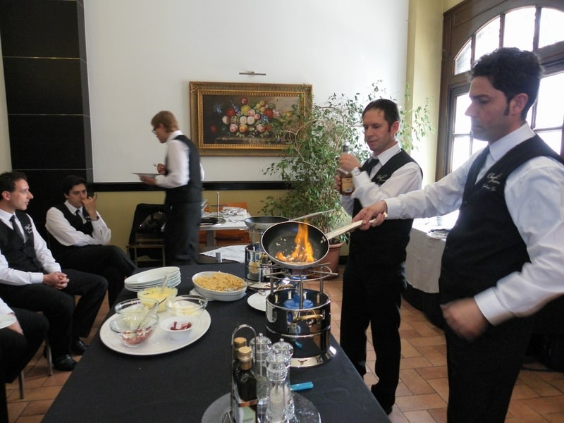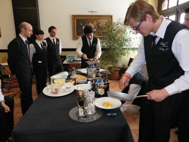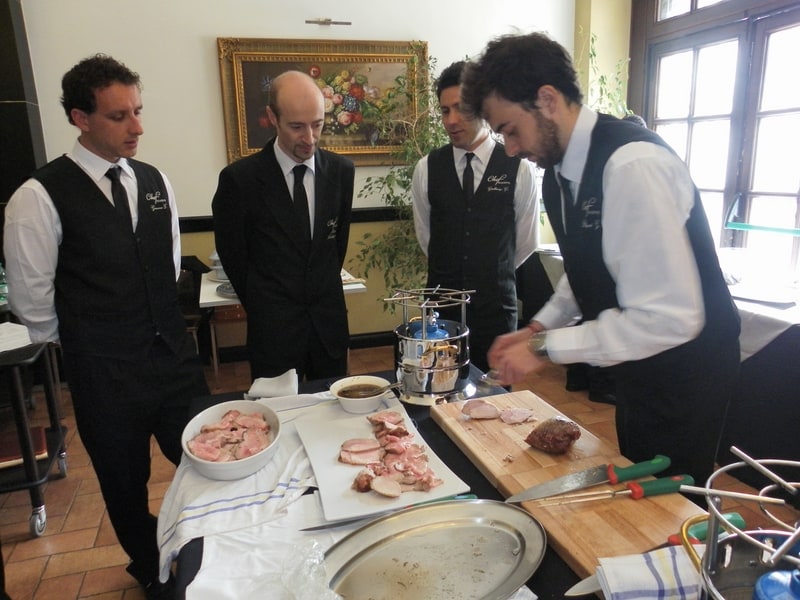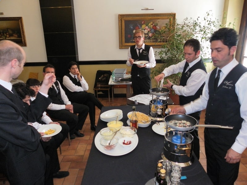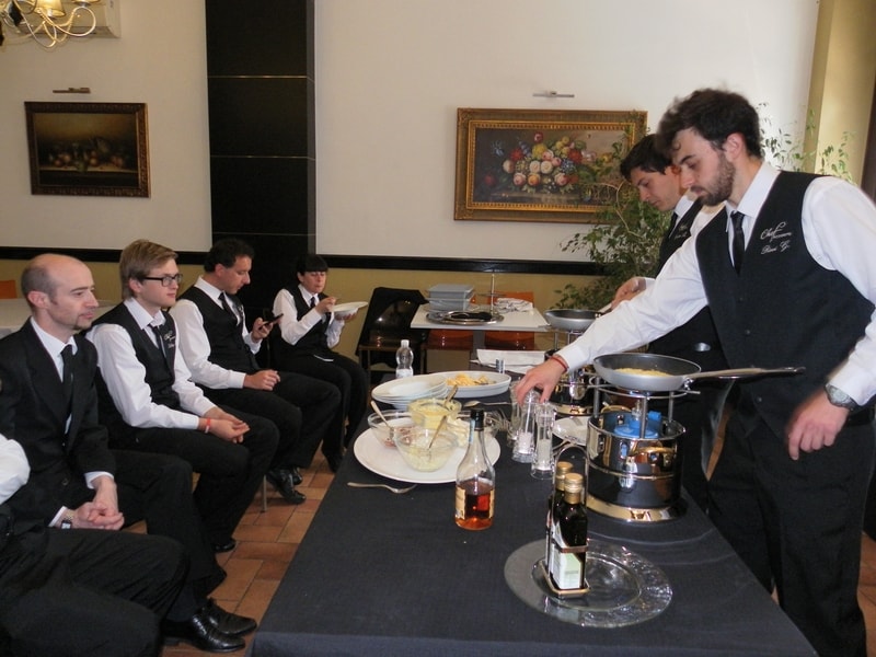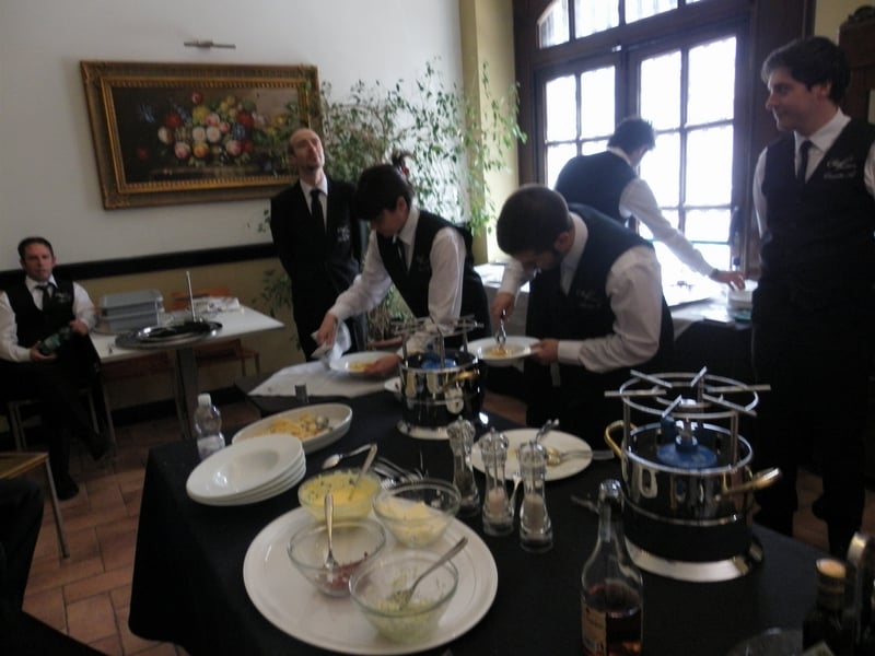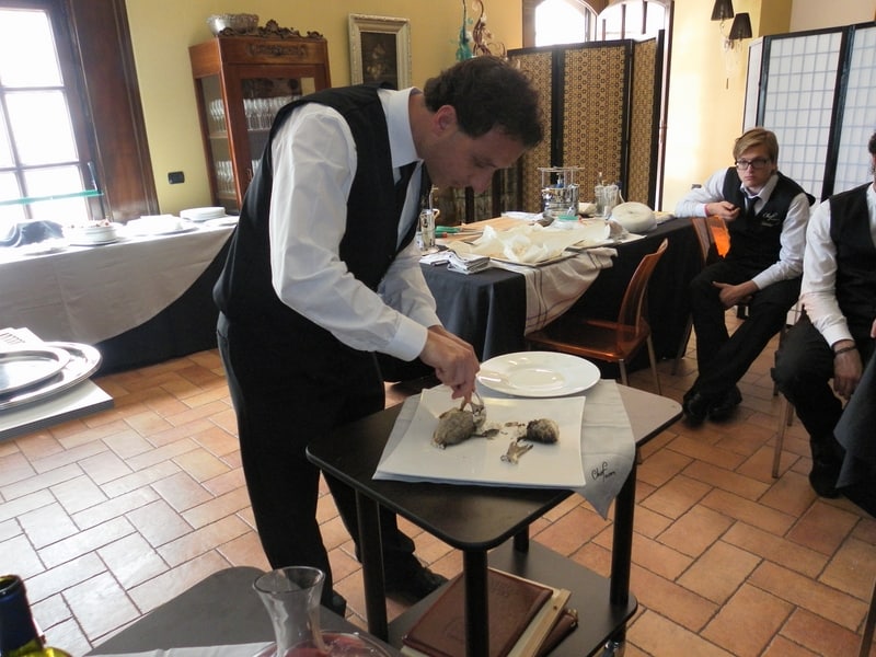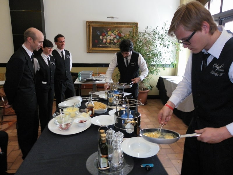 Prova di porzionatura pesce e carne degli allievi del corso ‘Addetto qualificato al servizio in sala’ guidata dal Maître Francesco Ambrogi.