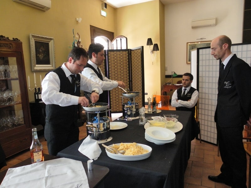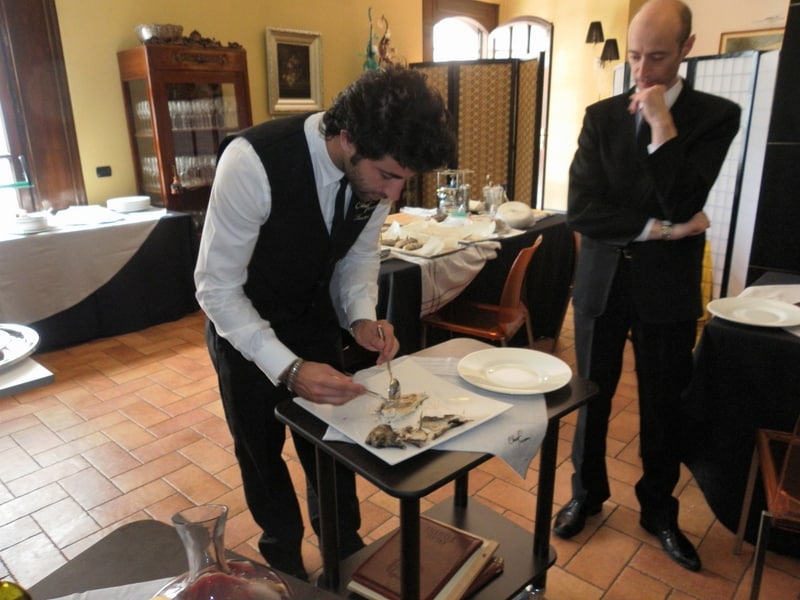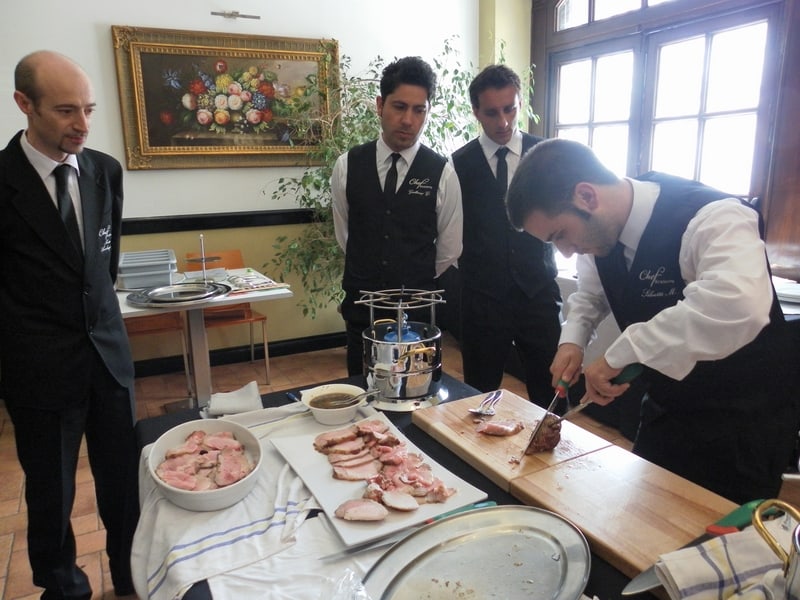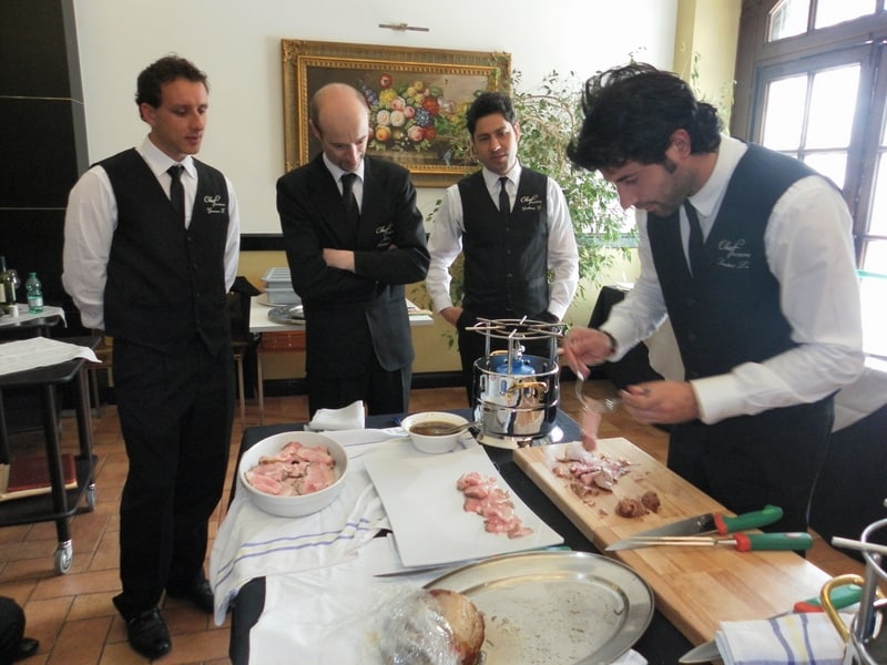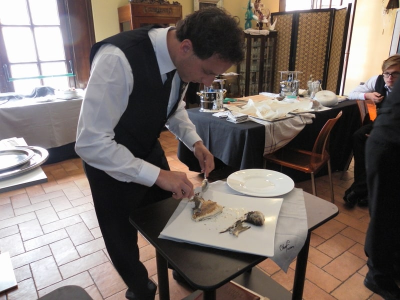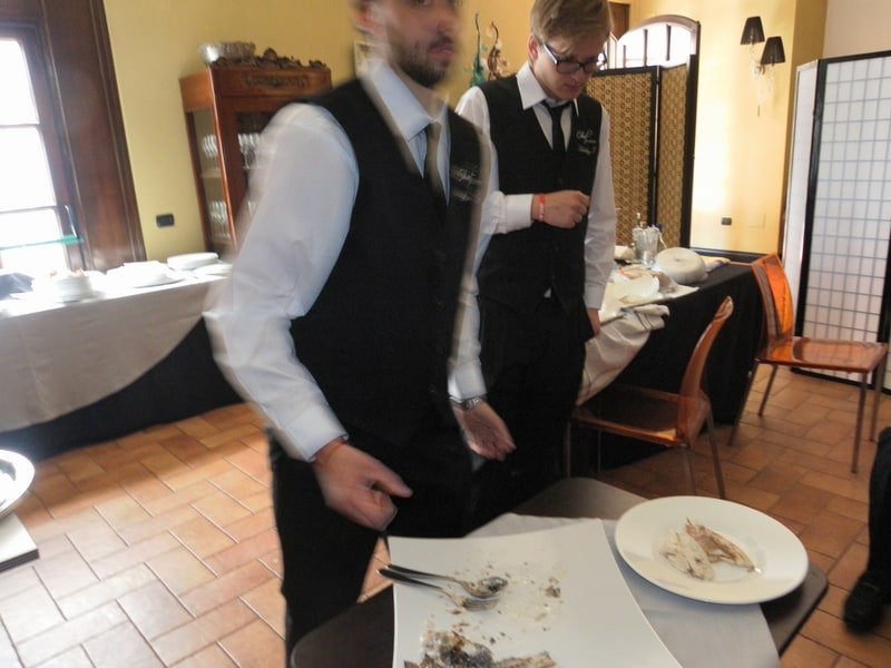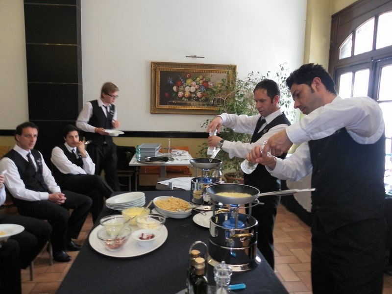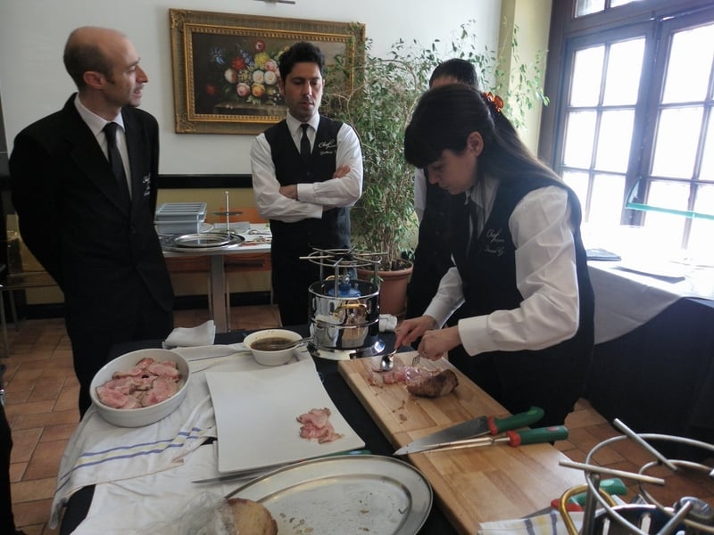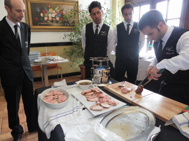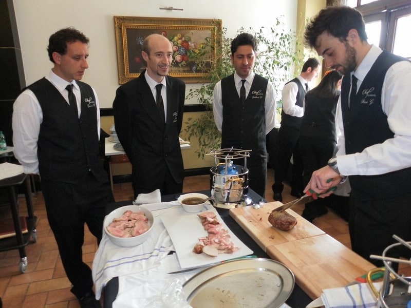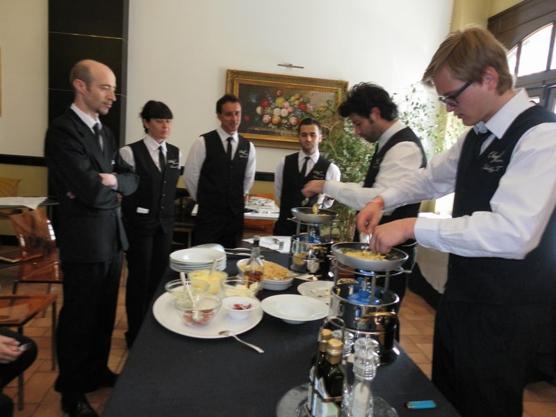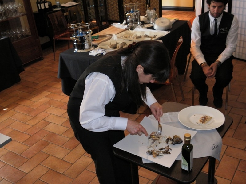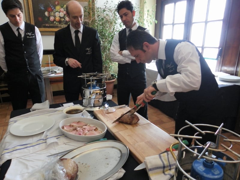 Prova di porzionatura pesce e carne degli allievi del corso ‘Addetto qualificato al servizio in sala’ guidata dal Maître Francesco Ambrogi.