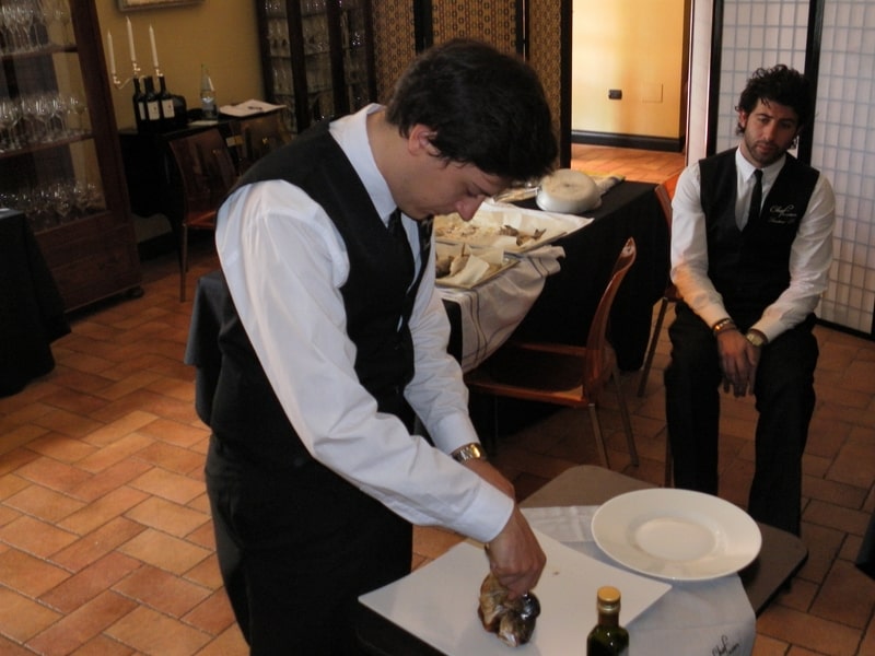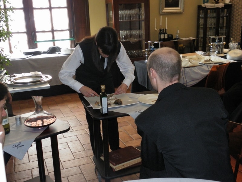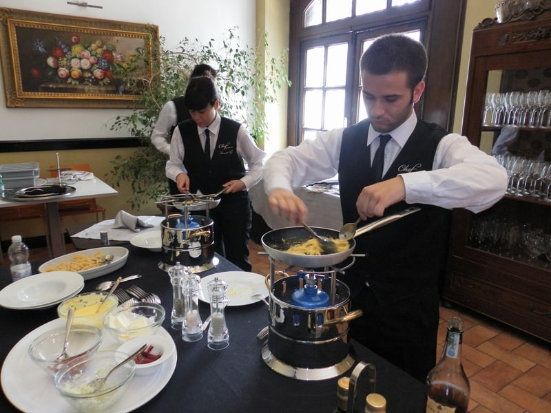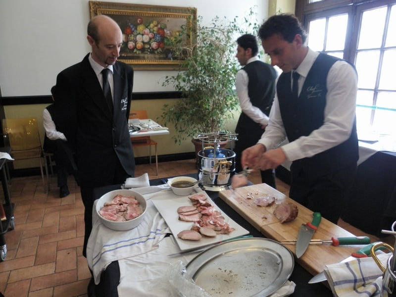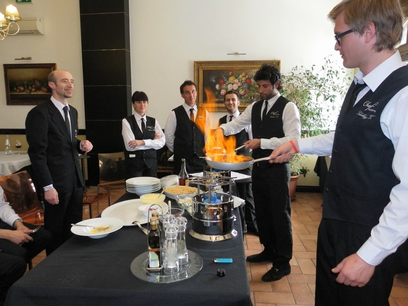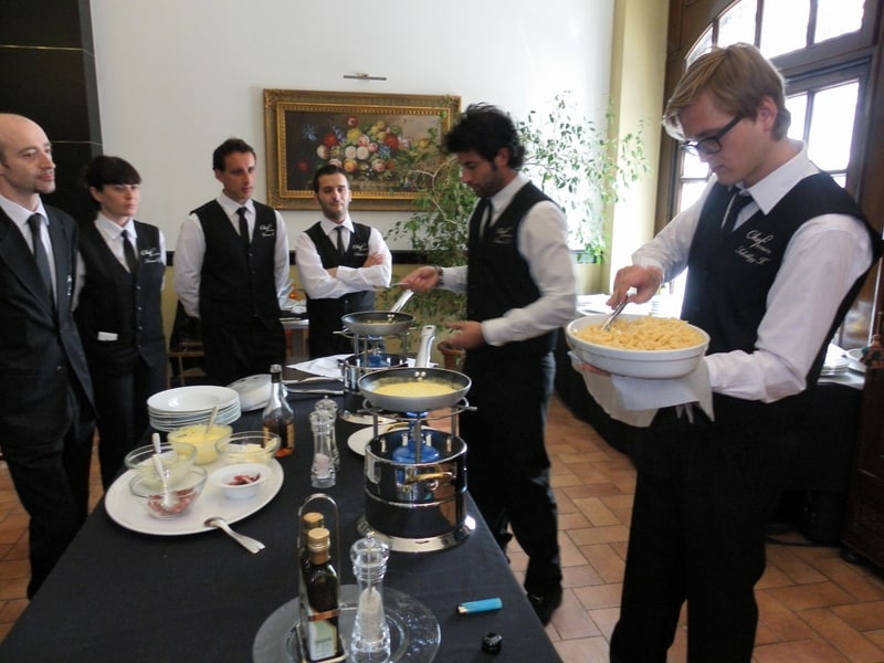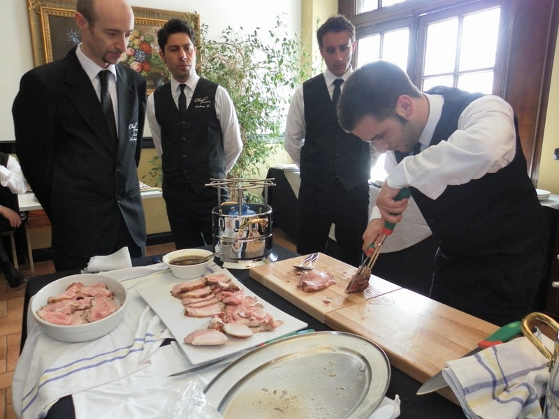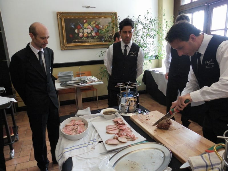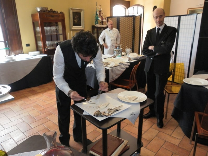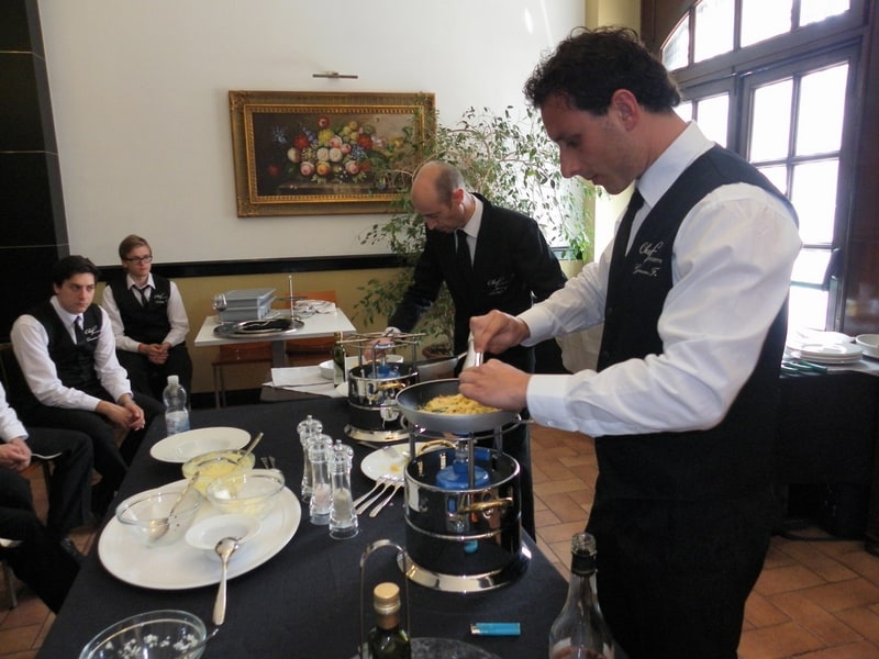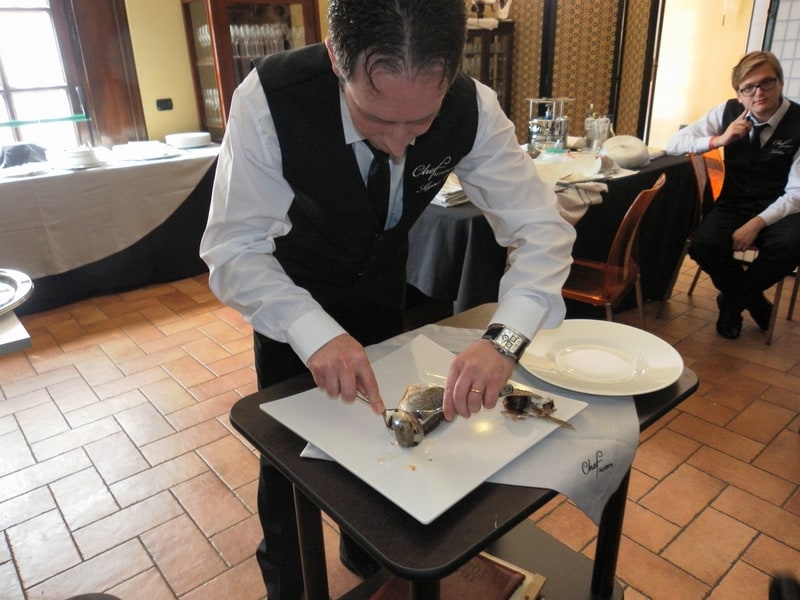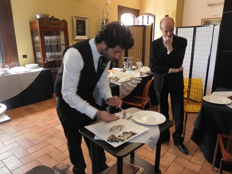 Prova di porzionatura pesce e carne degli allievi del corso ‘Addetto qualificato al servizio in sala’ guidata dal Maître Francesco Ambrogi.