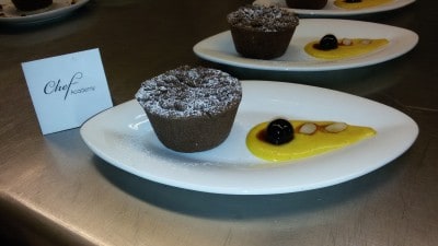 Per la frolla, lavorare all’interno della planetaria il burro a temperatura ambiente con lo zucchero, unire poi le uova ed infine la farina precedentemente unita al cacao. Lasciare riposare in frigo per almeno 2 ore.Procedere con la preparazione della crema inglese. Prendere un pentolino, mettere tutti gli ingredienti a freddo e iniziare a cuocere mescolando contiunuamente fino a quando la crema si addenserà velando il cucchiaio assicurandosi di non superare la temperatura di 82°C. Poco prima di spegnere il fuoco aggiungere anche la cannella in polvere. Conservare la crema coperta con della pellicola a contatto in frigorifero fino al momento di servire.Preparare poi il crumble versando tutti gli ingredienti in planetaria e lavorare molto velocemente creando un impasto “sbriciolato”.Procedere con la preparazione del ripieno unendo la ricotta allo zucchero, aggiungere poi i tuorli e profumare con la buccia del limone e qualche goccia di rum.Iniziare a comporre il tortino, prendere la frolla stenderla sottile e rivestire gli stampi monoporzione, spalmare sulla frolla un piccolo strato di marmellata di visciole e poi versare sopra il ripieno di ricotta e livellare bene. Infine ricoprire ogni tortino con il crumble precedentemente preparato.Infornare a 160°C per circa 35/40 minuti.Sformare ed impiattare mettendo nel piatto il tortino spolverizzato con lo zucchero al velo su una base di crema inglese, decorare con mandorle a lamelle tostate e visciole sciroppate.
