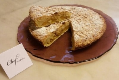 Iniziare impastando la brisè, mettere insieme tutti gli ingredienti in planetaria e impastare, poi una volta ottenuto un panetto uniforme lasciare riposare in frigo per almeno 2 ore. Nel frattempo preparare il composto per flan mettendo tutto insieme e frullare con minipimer ad immersione e lasciare da parte. Occuparsi ora del crumble, impastando tutti gli ingredienti insieme in planetaria formando un composto di briciole. Una volta pronta la brisè. Stenderla sottile, 2, 3 mm e rivestire uno stampo del diametro di 22 cm, mettere sul fondo le pesche sciroppate, versare sopra il composto per flan e in ultimo aggiungere il crumble a copertura. Cuocere infine in forno a 160°C per 30/35 minuti circa. Una volta raffreddato, sformare e spolverizzare la superficie con zucchero al velo.