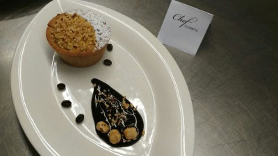Per la PASTA FROLLA: Montare il burro con lo zucchero a velo, il sale e i semini della bacca di vaniglia. Dopodiché aggiungere a filo gli albumi continuando a montare. Successivamente aggiungere le polveri setacciate e continuare a montare finché il composto non sarà omogeneo. Per il BISQUIT AL CACAO: Montare gli albumi ed aggiungere lo zucchero poco prima che diventino ben fermi (continuando a montare). Successivamente aggiungere i tuorli a filo amalgamandoli al composto con una spatola in silicone e alternandoli al cacao. Stendere il composto su una teglia con carta forno e cuocere a 200°C per 5 minuti. Per la TORTA NOCCIOLA: Lavorare in planetaria con un gancio a foglia il burro, lo zucchero semolato e lo zucchero a velo finché non ottengo un impasto cremoso. Dopodiché aggiungo a filo le uova intere e per ultime le farine setacciate. MONTAGGIO DEI TORTINI: Mettere la frolla viennese nel sac à poche e dressare nei pirottini di alluminio il fondo ed il bordo dei nostri tortini compattandoli poi con la mano. Dopodiché ritagliare dei dischetti di bisquit al cacao con un coppapasta e dello stesso diametro del fondo del pirottini e sistemarlo sulla frolla. Aggiungere uno strato di crema spalmabile al gianduja e completare con l’impasto della torta alla nocciola. Ricoprire il tutto con granella di nocciole ed infornare a 160°C per 20 minuti circa. Per la GANACHE FONDENTE AL CAFFE’: Mettere a bollire la panna con il caffè solubile. Quando è pronta versarla sul cioccolato e mescolare velocemente finché non sarà liscia, lucida ed omogenea. Quando i tortini saranno pronti servirli con la ganache al caffè, le nocciole tostate e qualche chicco di caffè.