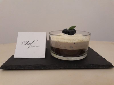 Per la base Montare uova e zucchero in planetaria ed aggiungere la farina insieme alla polvere lievitante ed in seguito il cacao. Versare in uno stampo di circa 20 cm ed infornare a 180 gradi per circa 30 minuti. Per la crema: Mescolare le uova ed il latte, aggiungere l’amido e far addensare a fuoco basso, togliere dal fuoco e addizionare la gelatina precedentemente idratata. Mercolare e lasciar raffreddare. Montare la panna in planetaria ed aggiungerla alla crema precedentemente raffreddata. Assemblare la torta con uno strato di base sul quale si stenderà della confettura di mirtilli ed in seguito la crema. Decorare a piacere e servire