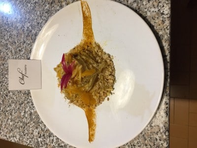 Mondare la zucca e tagliarla a cubetti da un centimetro dopodiché frullare con il mini pimer e aggiustare di sale, nel frattempo far bollire l’acqua per la pasta, farla cuocere per 9 minuti, una volta cotta si fa saltare in padella con la salsa alla zucca, poi mettere nel piatto con la granella di noci e la cipolla in carpione
