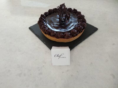 Ingredienti: INGREDIENTI Frolla sableè (stampo 20 cm) 250 gr farina debole 165 gr burro 83 gr zucchero a velo 137 gr uva intere Aromi: bacca vaniglia, pizzico sale Crema frangipane 112 gr farina di mandorle 112 gr burro 112 gr uova interre 34 gr farina debole 12 gr cacao amaro in polvere Ganache al cioccolato 135 cioccolato fondente al 70% 110 gr panna fresca 22 gr burro 12 gr sciroppo di glucosio Farcitura Pesche sciroppate qb. Confettura alle pesche qb. Granella di noci qb. Decori di cioccolato fondente o al latte, foglia d’oro