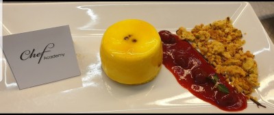 Ingredienti: Cake al limone 125 gr. Zucchero 35 gr. Burro fusso 90 gr. Uova intere 100 gr. Farina 55 gr. Panna Vaniglia ,pasta frutta oro limone Crema inglese 125 latte 125 panna 60 gr tuorli 75 zucchero Bavarese 100 gr. Crema inglese 90 gr mascarpone 125 panna 4 gr. Gelatina Fragoline di bosco semicandite Inserto Tutta frutta frutti di bosco Coulis di fragole e fragoline