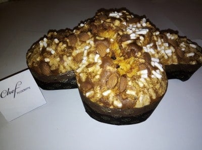Ingredienti: uova 3 farina senza glutine gr 350 olio di semi di girasole gr 90 latte gr 170 zucchero gr 150 scorza di arancia nr 1 scorza di limone nr 1 fialetta aroma mandorla nr 1 bustina di lievito pizzaiolo nr 1 mandorle e granella di zucchero gocce di cioccolato