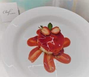 Infine decorare la mini cheesecake con una fragola tagliata a metĂ e mettere una fogliolina di menta.