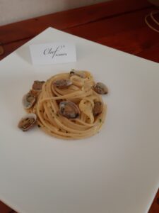 Lasciare in ammollo in acqua le vongole per 2/3 ore. Sciacquare con acqua fredda e mettere a cuocere in una casseruola con un po’ d’acqua finché non si aprono. Nel frattempo mettere a bollire l’acqua per la pasta. Una volta aperte le vongole trasferirle dentro una padelle facendo attenzione a filtrare l’acqua con cui hanno cotto, sfumare con il vino bianco e lasciare evaporare l’alcool. Mettere a cuocere anche le linguine e tirarle fuori al dente così da saltarle in padelle con le vongole, aggiungere il prezzemolo tritato e servire.