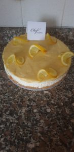 philadelphia 450g, zucchero 100g, panna montata 250g, marmellata di limone 5g, gelatina 13g. Burro fuso 1/2 frolla utilizzata