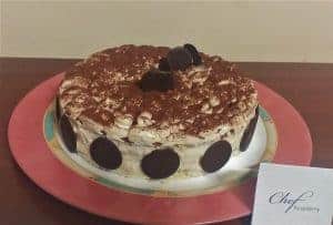 Torta classica italiana con base di pan di spagna, bagna al caffè e crema di pate à bombe, mascarpone, e panna.