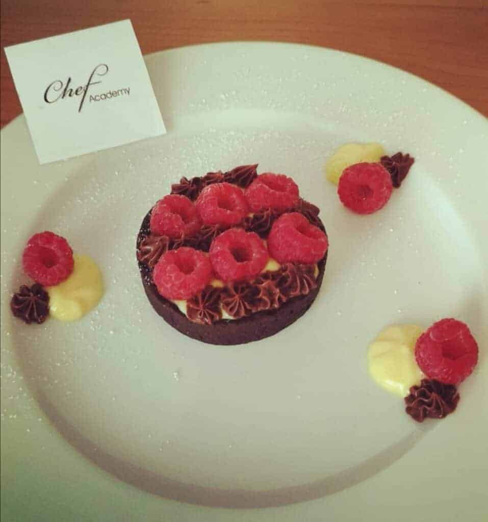 Per l’assemblaggio. Spalmare uno strato sottile di confettura di lamponi sul fondo della crostatina, uno strato di crema, infine ciuffetti di ganache e lamponi freschi.