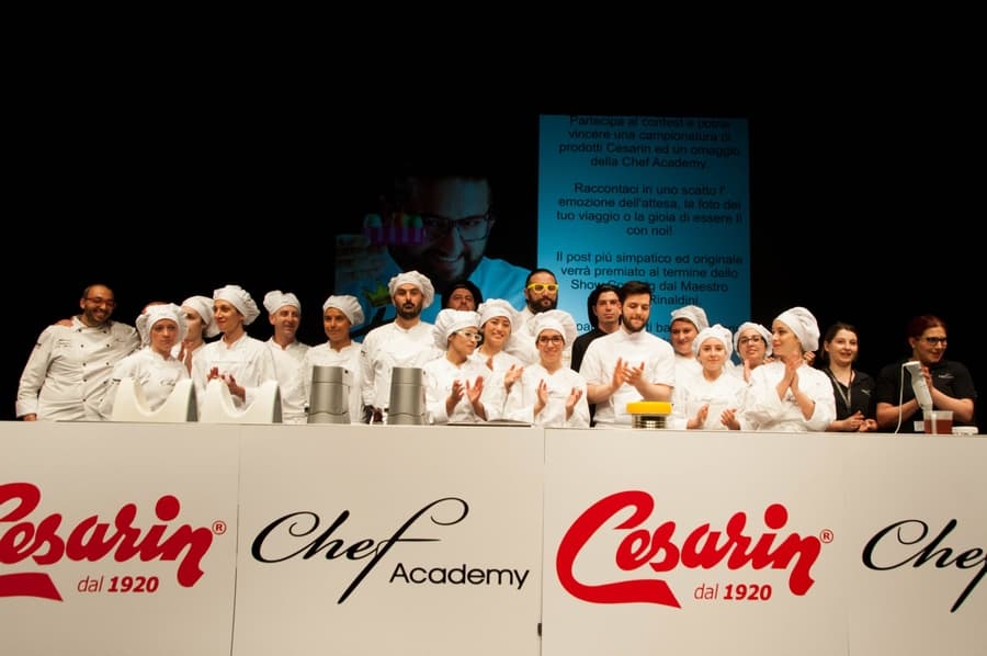 Grande evento a Terni il 16 Maggio 2017 organizzato dalla Chef Academy e dalla Cesarin S.p.A. che hanno realizzato alla presenza di oltre 250 invitati presso il Teatro Secci, uno show cooking con degutsazione dei prodotti realizzati dal Maestro Roberto Rinaldini, pluripremiato Campione del Mondo e grande Maestro Pasticcere nonchè volto noto al grande pubblico per aver partecipatao in qualità di giudice a varie trasmissioni televisive. Ecco alcuni dei momenti dell’evento