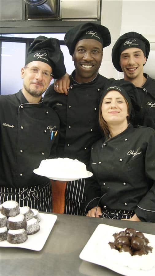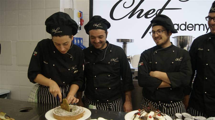 Gli studenti dei corsi Cuoco alle prese con la realizzazioni di torte classiche sotto la sapiente guida del Maestro Emanuele Carletti.