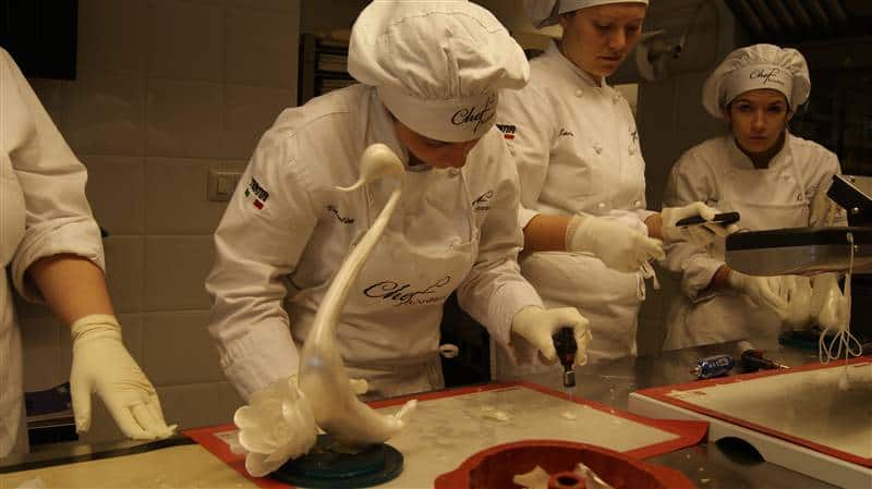 Stupenda due giorni di lezione con i corsi Pasticcere guidati da un grandissimo Maestro di fama internazionale e pluridecorato come campione del Mondo di Zucchero Artistico e di Pasticceria, Davide Malizia. Ecco le foto della studenda lezione e la realizzazione finale, una vera e propria opera d’arte!!